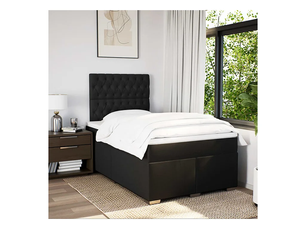 Cama boxspring com colchão 120x190 cm tecido preto