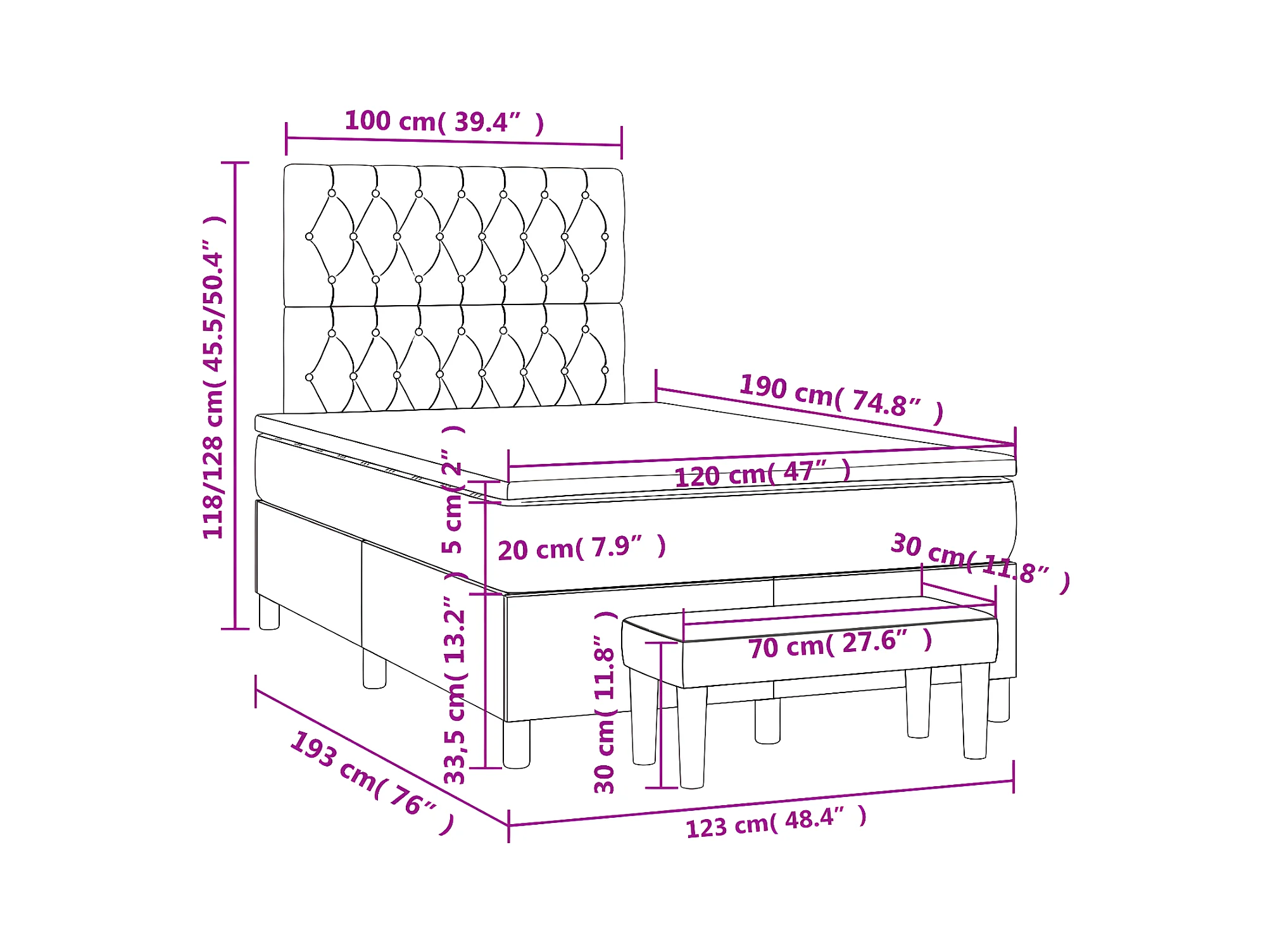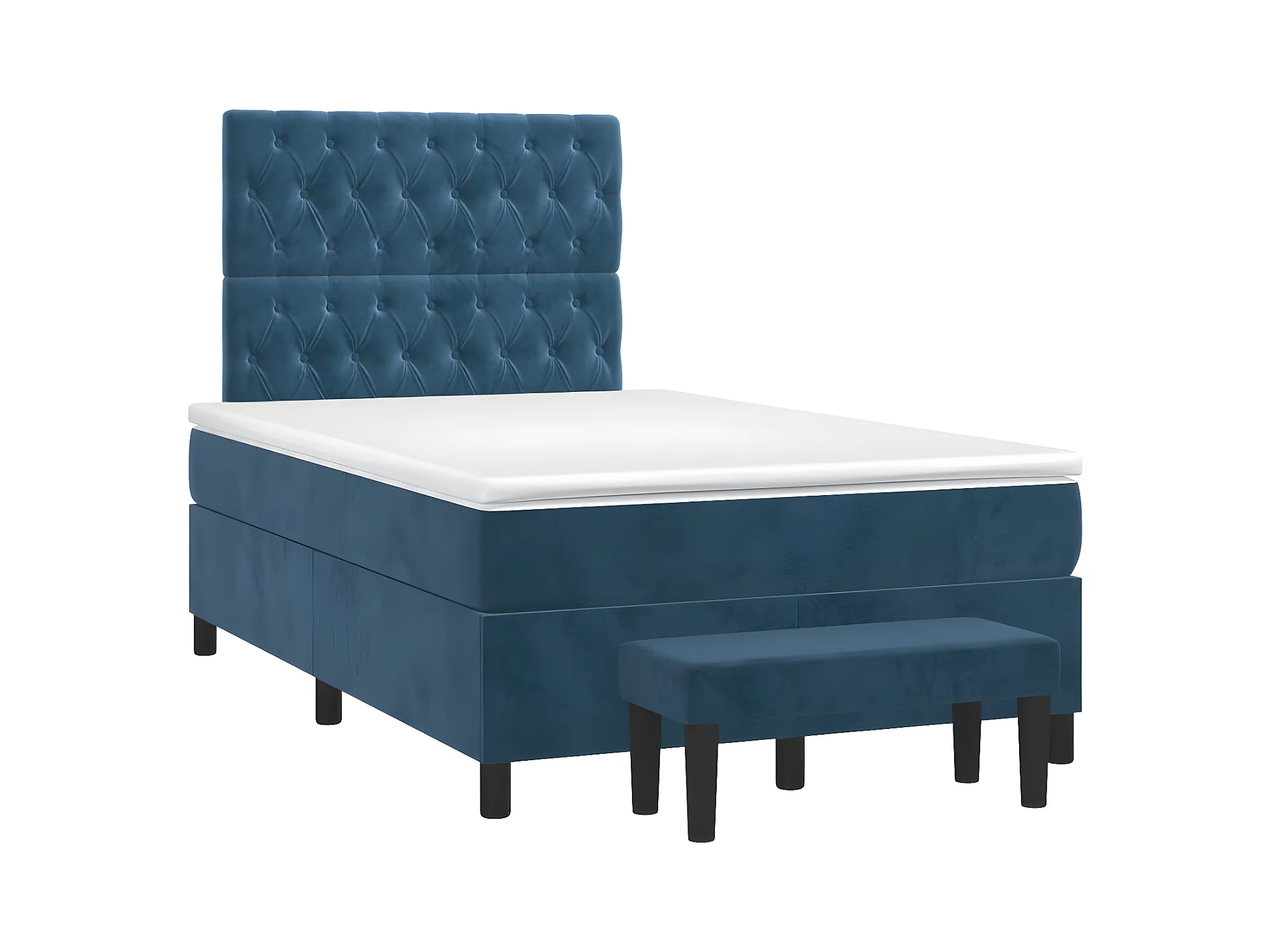 Cama boxspring com colchão 120x190 cm veludo azul-escuro