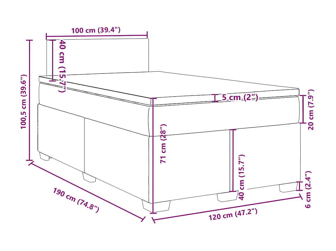 Cama boxspring com colchão 120x190 cm veludo rosa