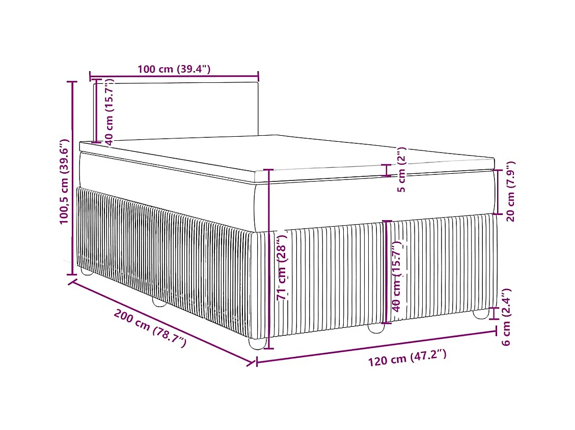 Cama boxspring com colchão 120x200 cm veludo azul-escuro