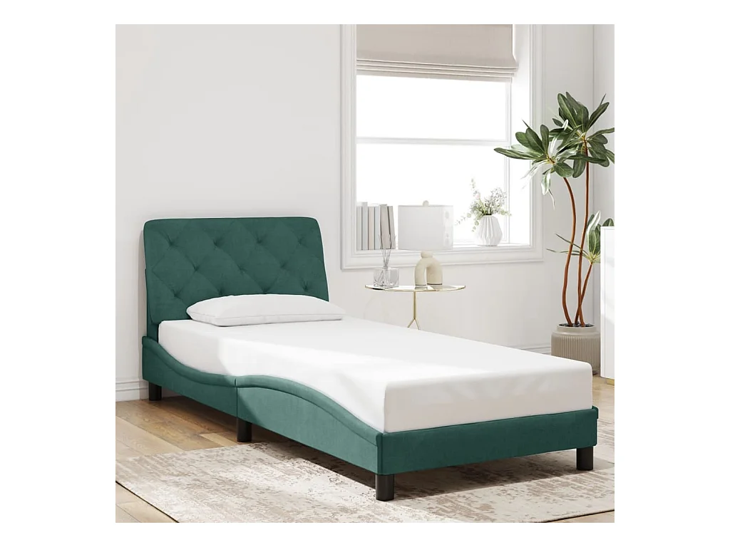 Cama c/ cabeceira 90x190 cm veludo verde-escuro PT772052