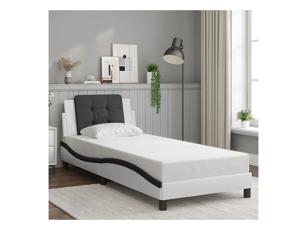 Cama com colchão 80x200 cm couro artificial preto e branco PT926407