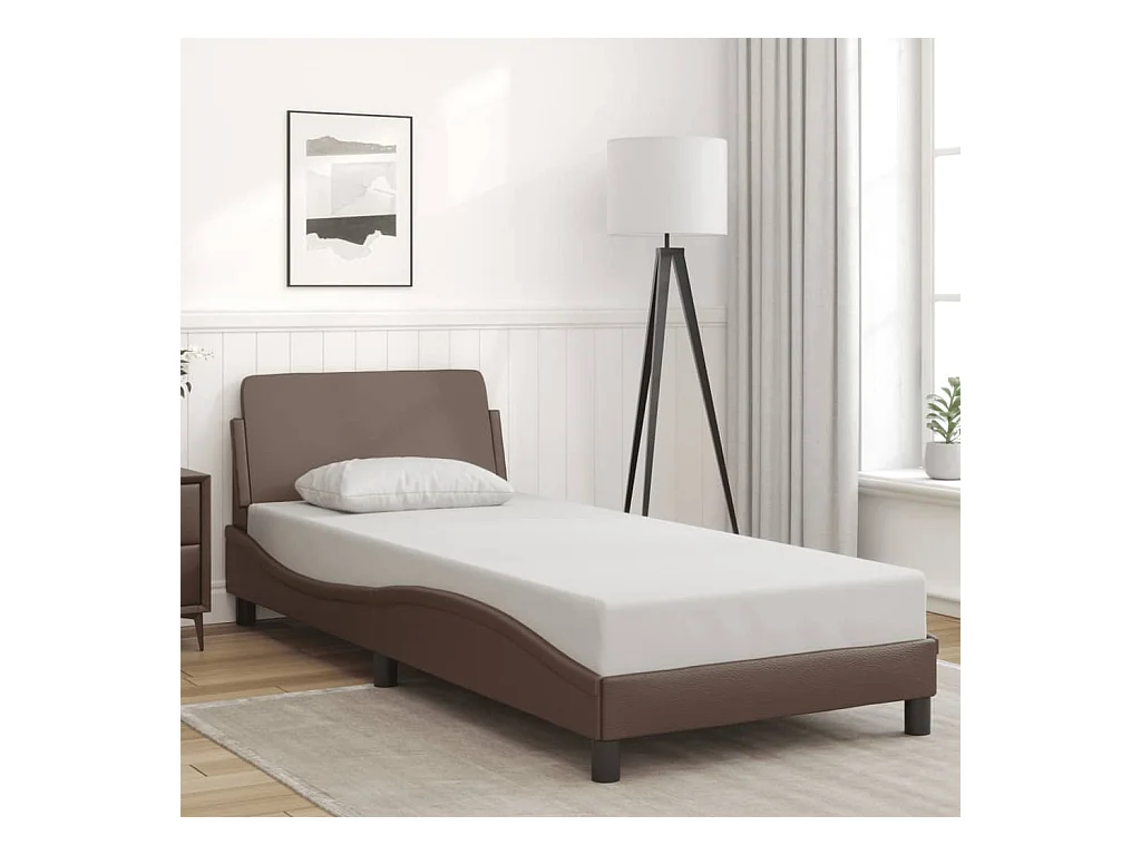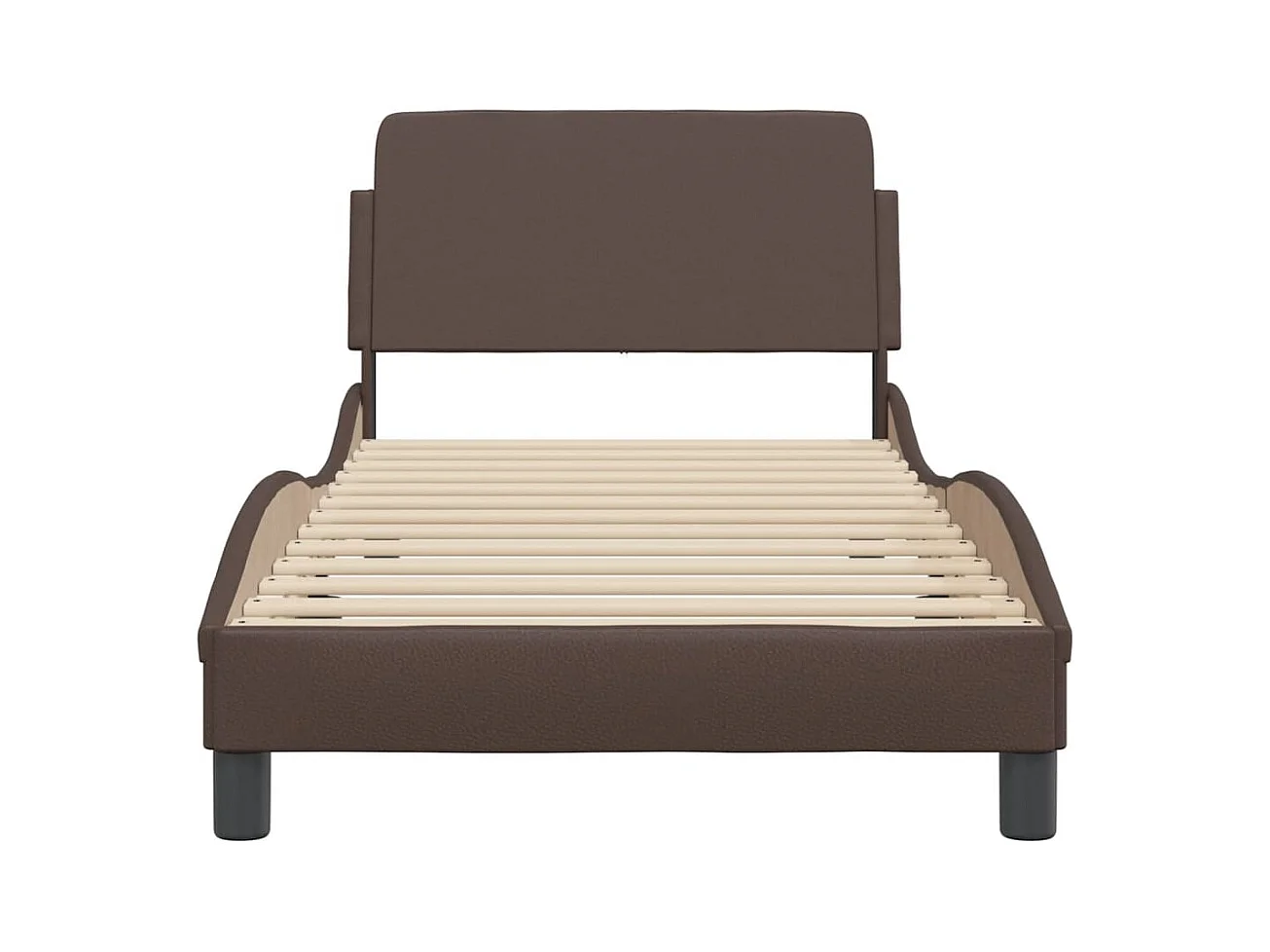 Cama c/ cabeceira couro artificial 80x200 cm castanho PT957851