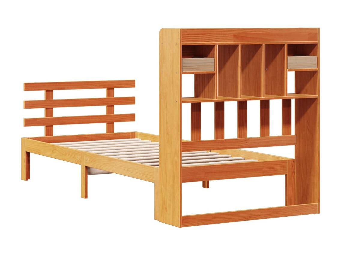 Cama c/ estante sem colchão 100x200cm pinho maciço castanho-mel
