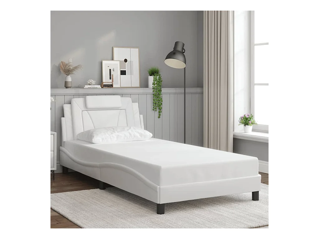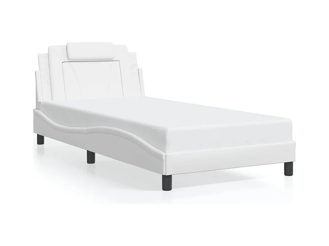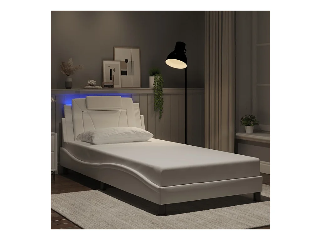 Cama c/ luzes LED 100x200 cm couro artificial branco PT774783