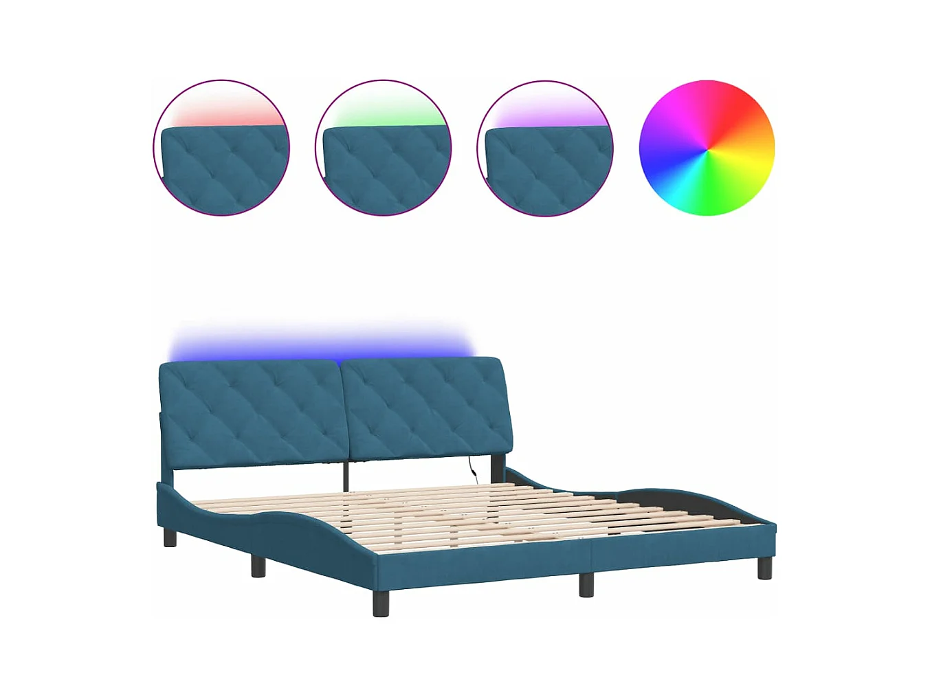 Estrutura de cama c/ luzes LED 180x200 cm veludo azul