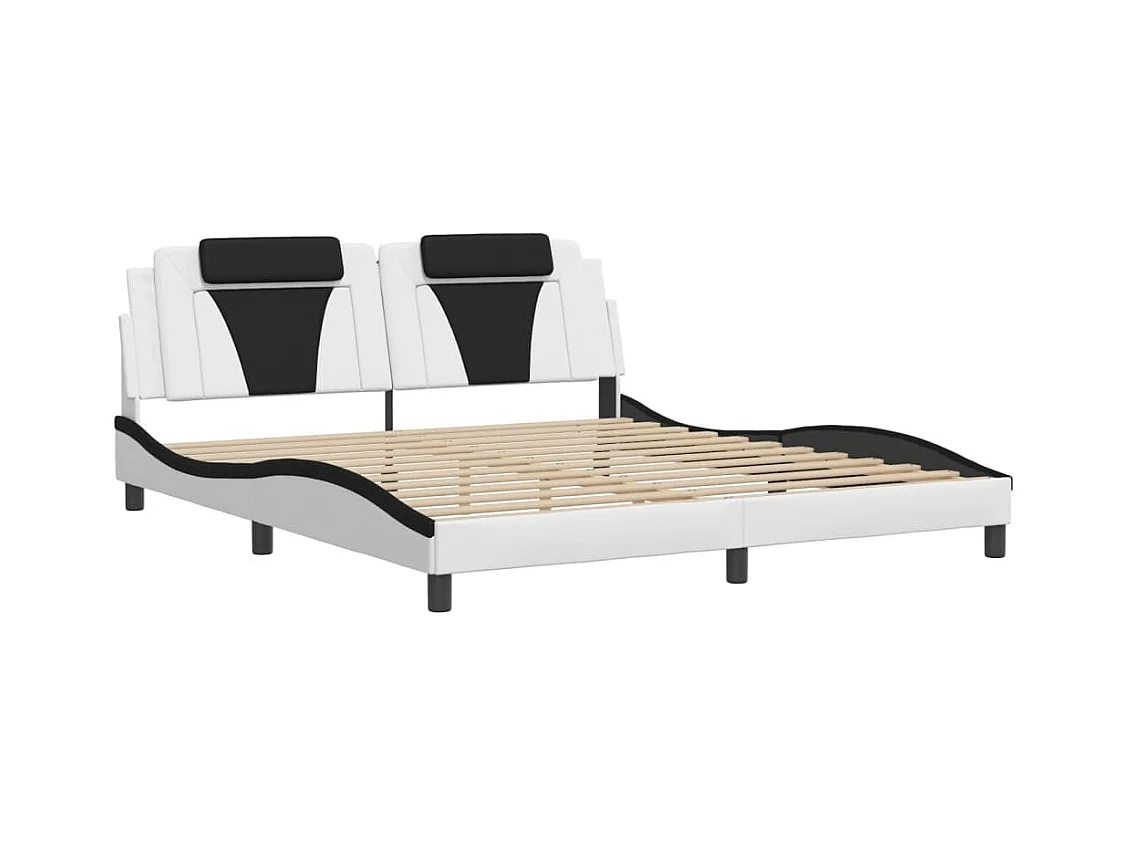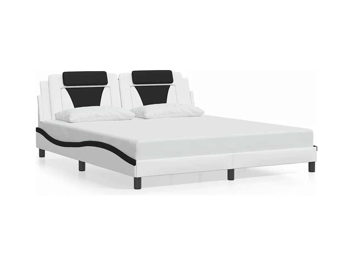 Cama c/ cabeceira couro artificial branco e preto PT803680