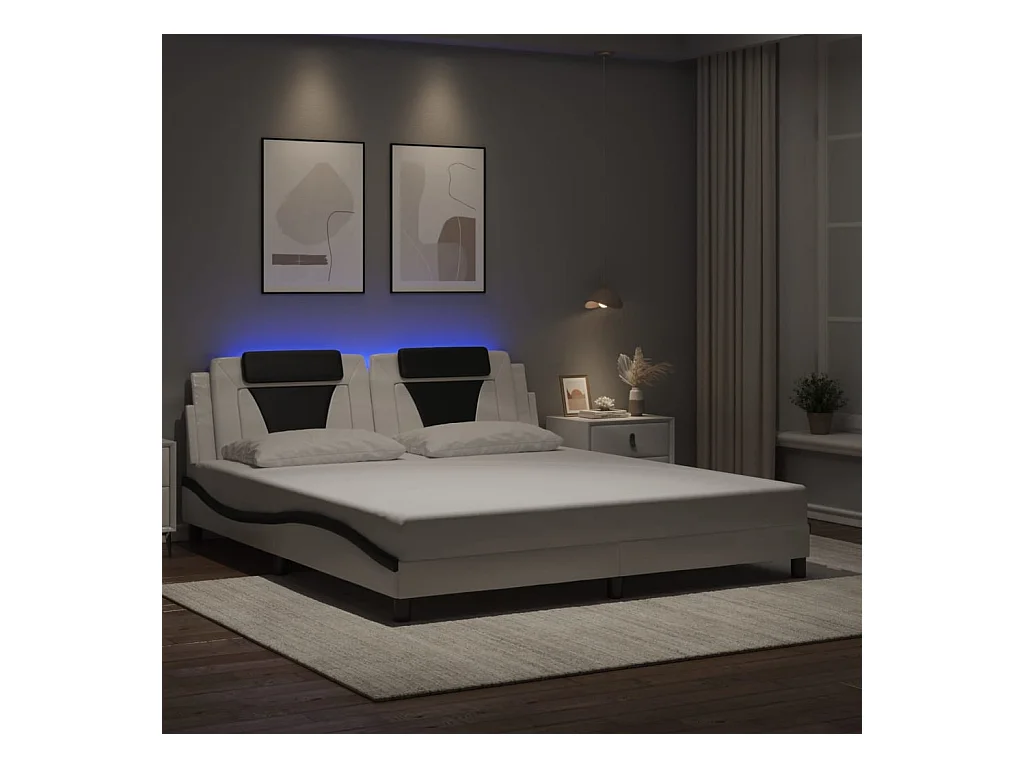 Cama c/ luzes LED 180x200cm couro artif. branco/preto PT480938