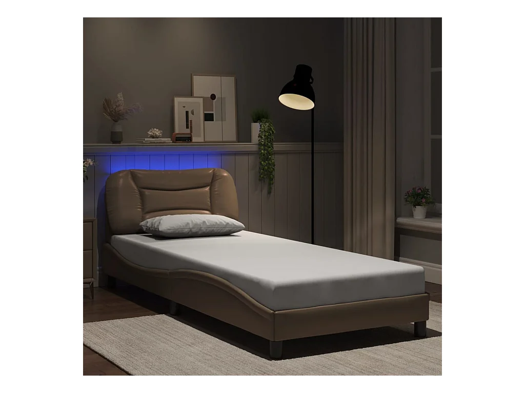 Cama c/ luzes LED 90x200cm couro artif. cappuccino PT998271