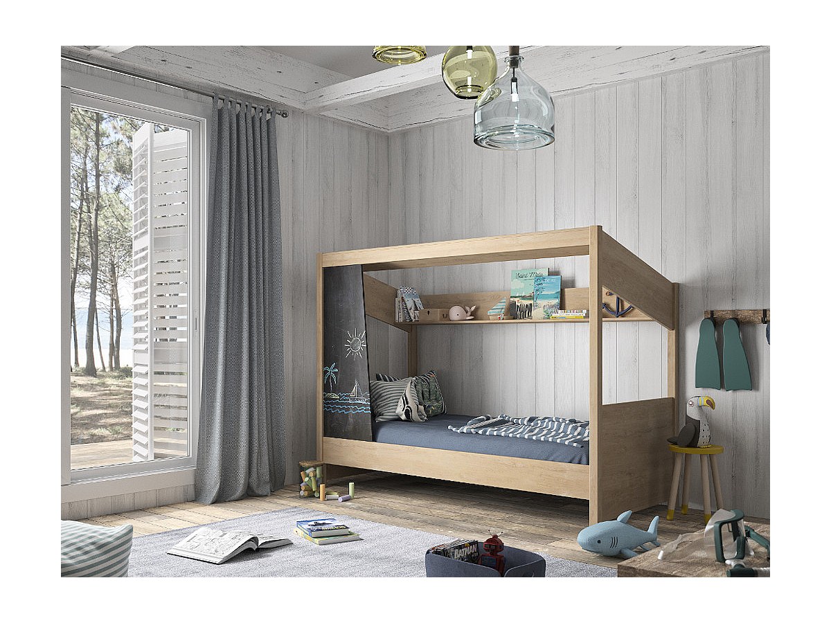 Cama cabana com quadro de ardósia e espaços de arrumação 90 x 200 cm Cor: carvalho - NATHAN
