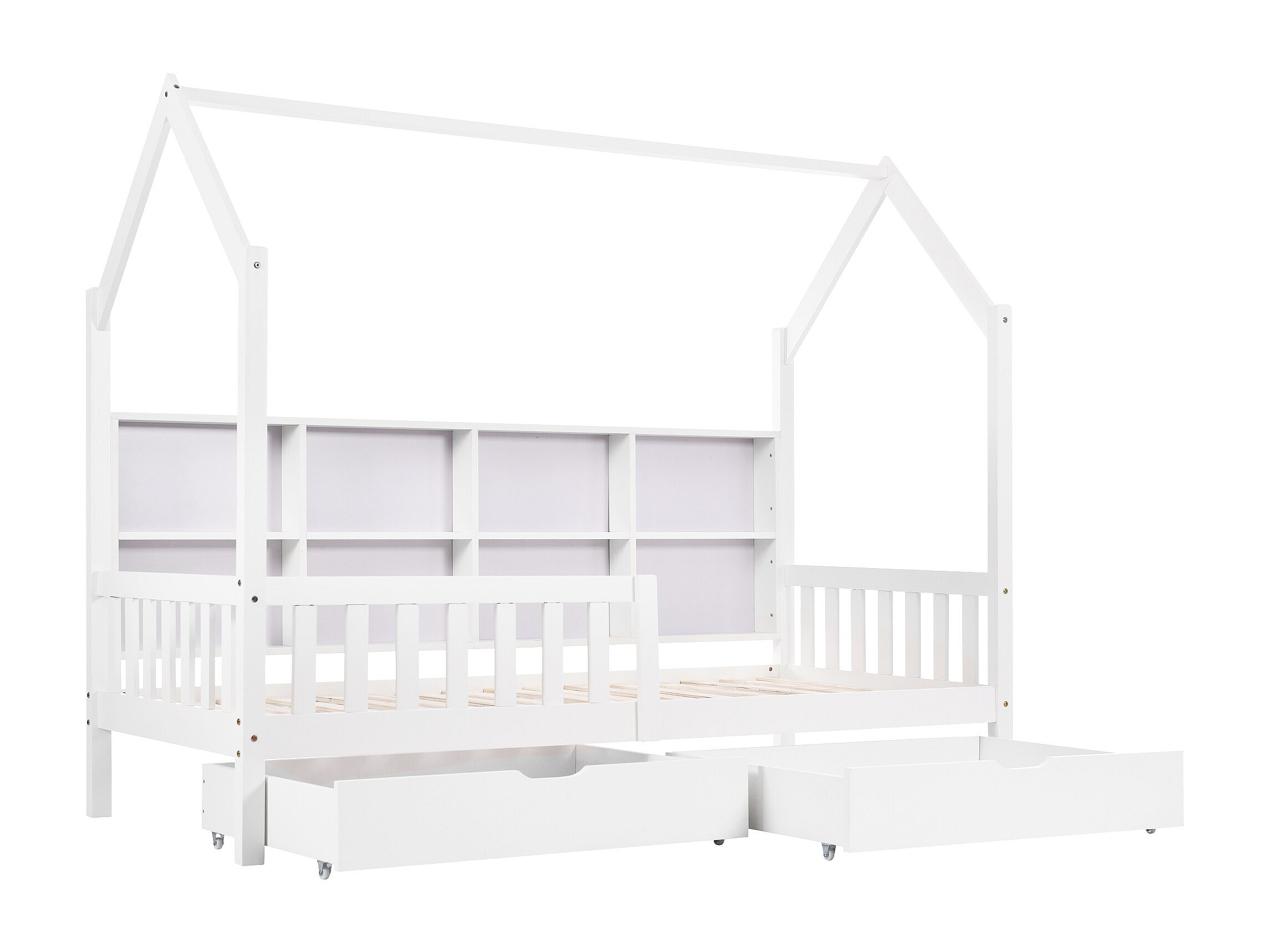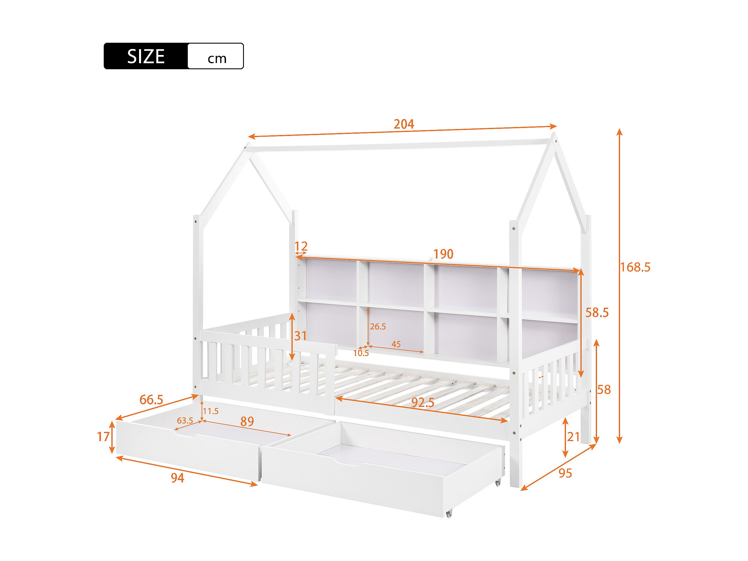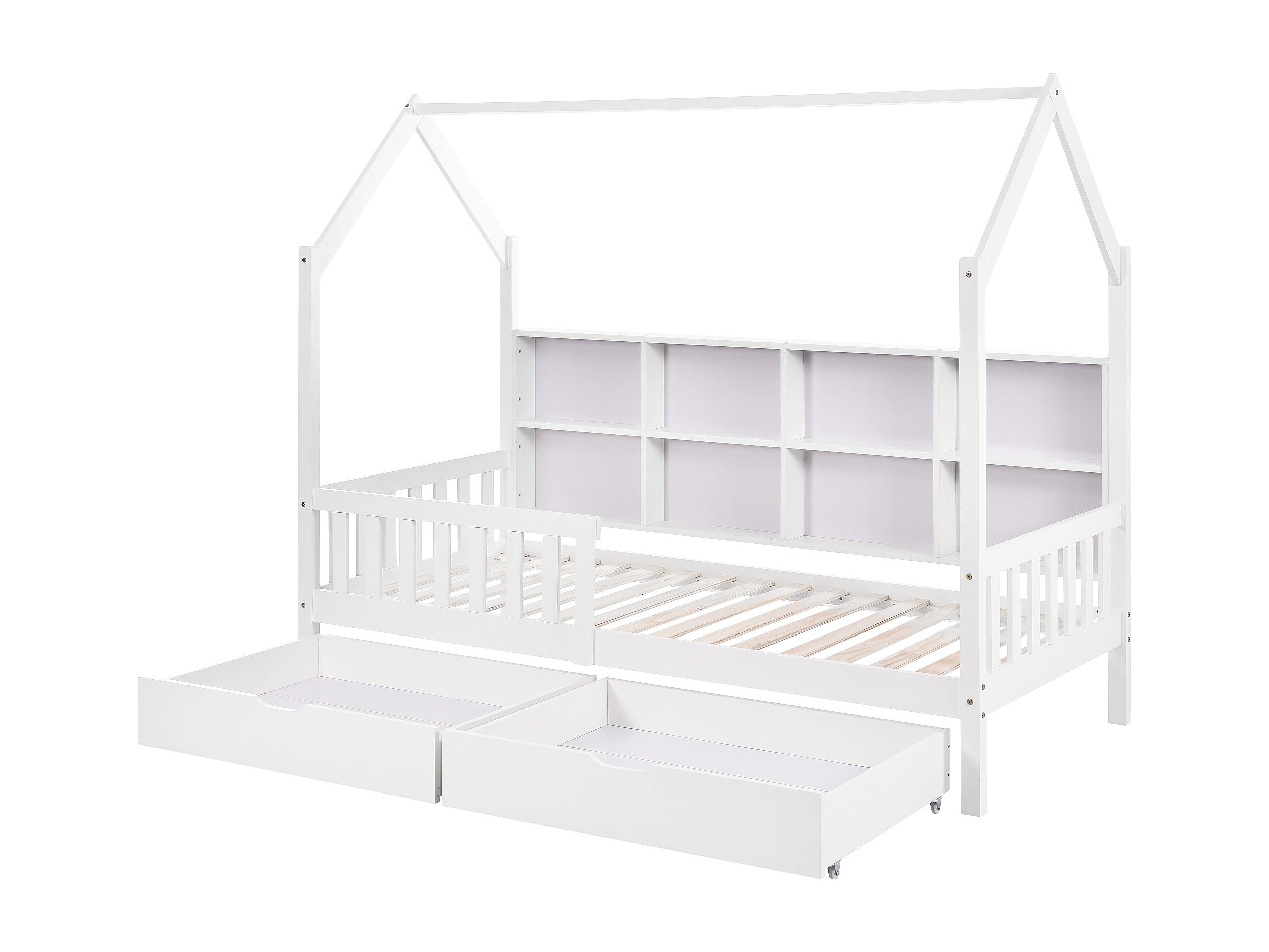 Cama cabine infantil branca 90x200cm com 2 gavetas, compartimentos de arrumação, sem colchão