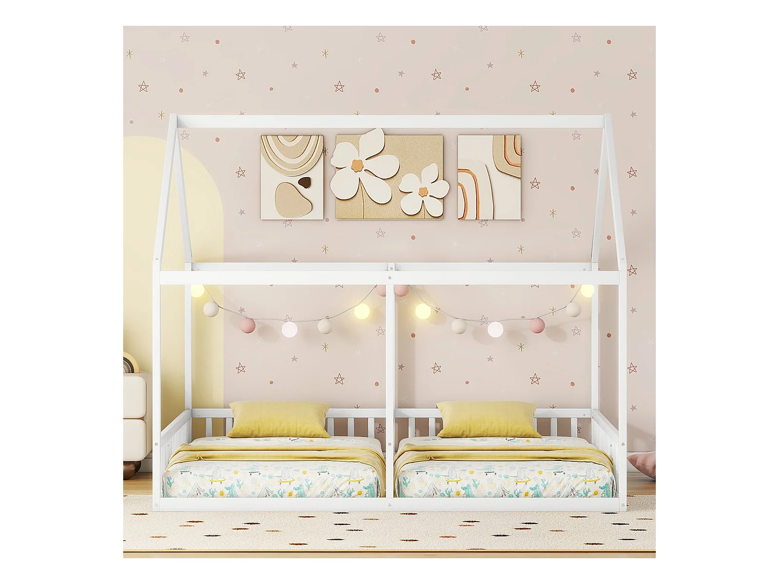 Cama cabine para 2 crianças 90x200cm - camas planas modelos de casa camas 2 dormir 2 em 1 - branco