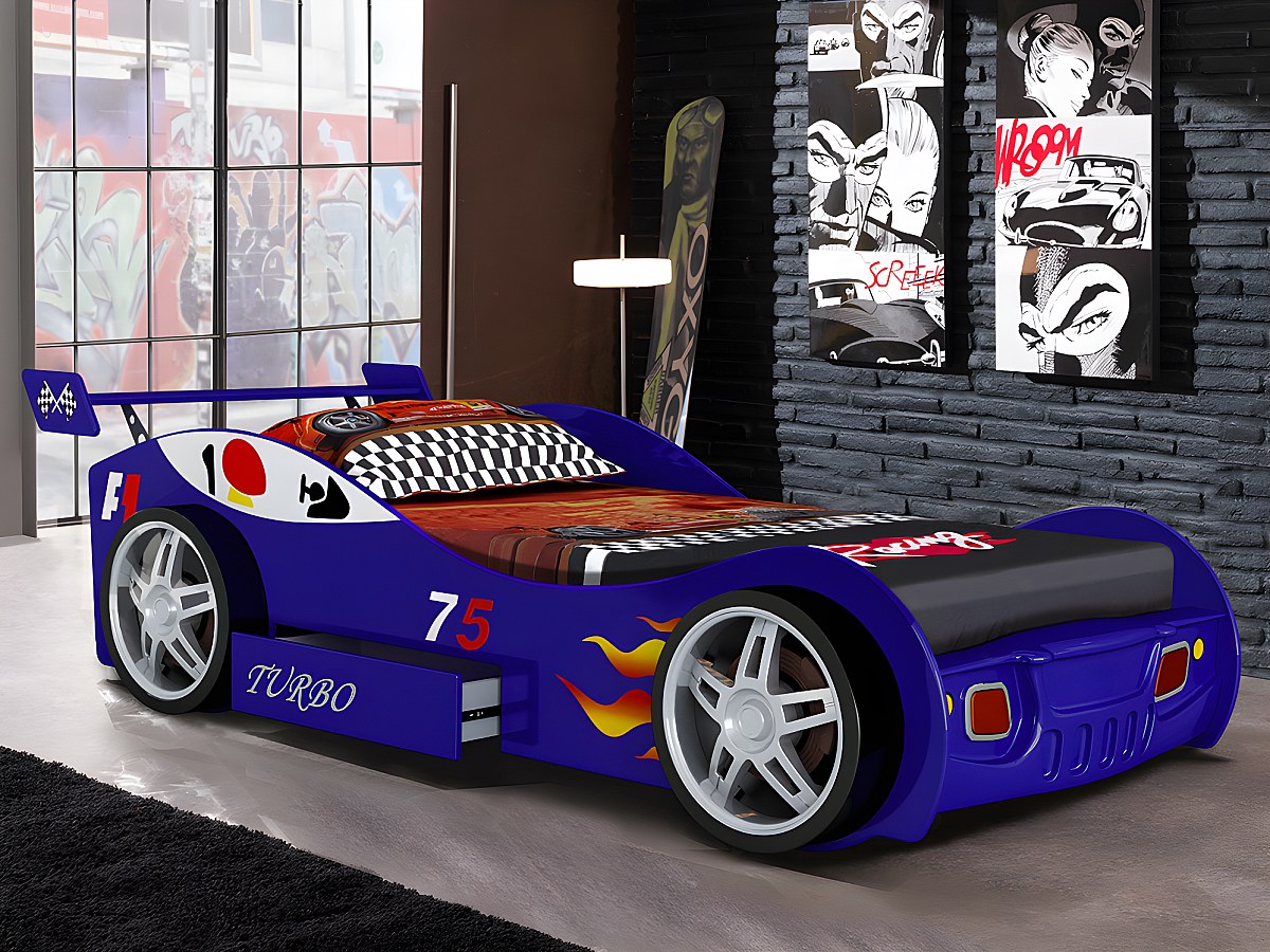 Cama carro com gaveta 90x200 cm Azul - RUNNER