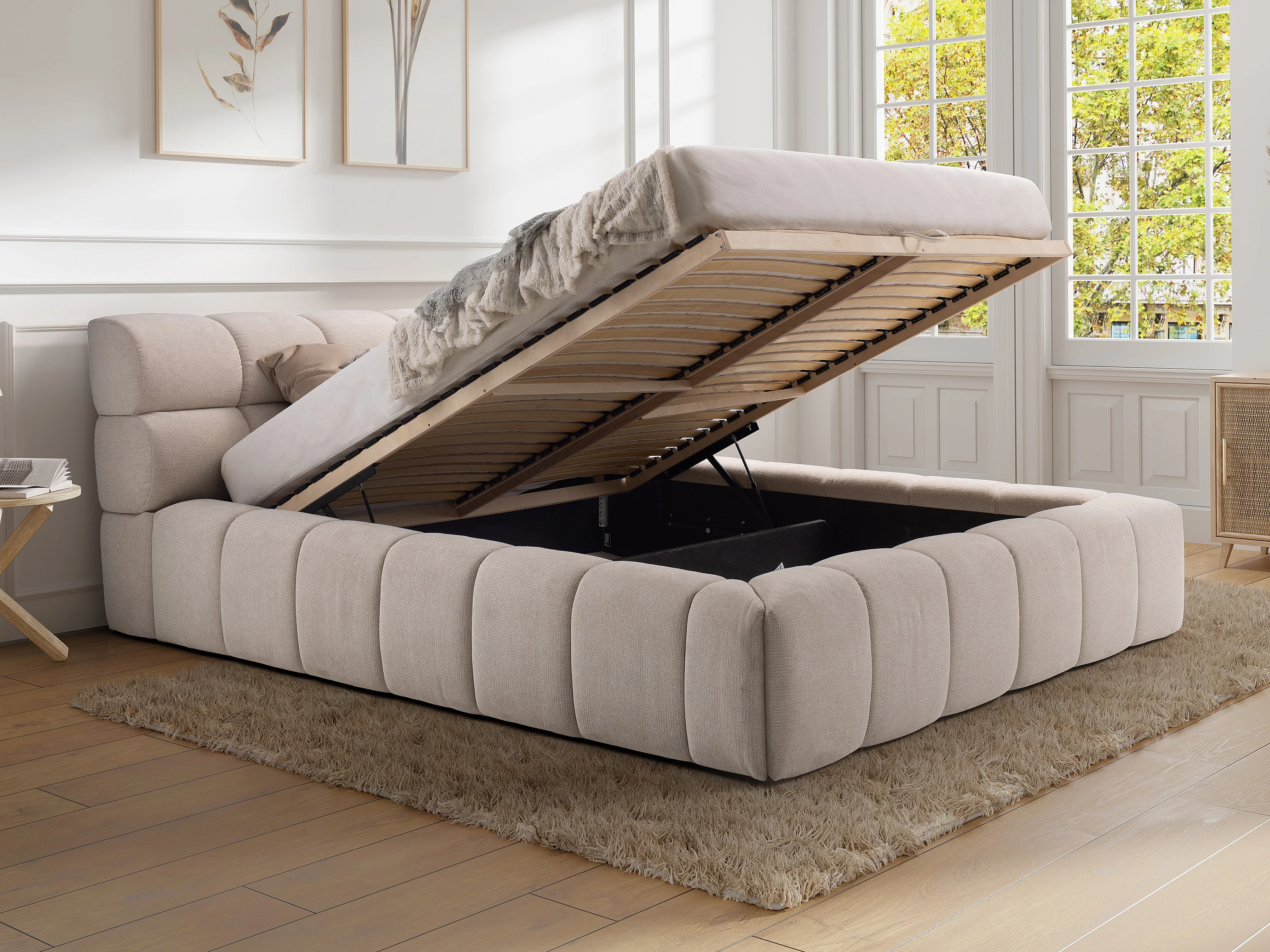 Cama com espaço de arrumação 180x200 cm tecido bege - FORVIK II de Pascal Morabito