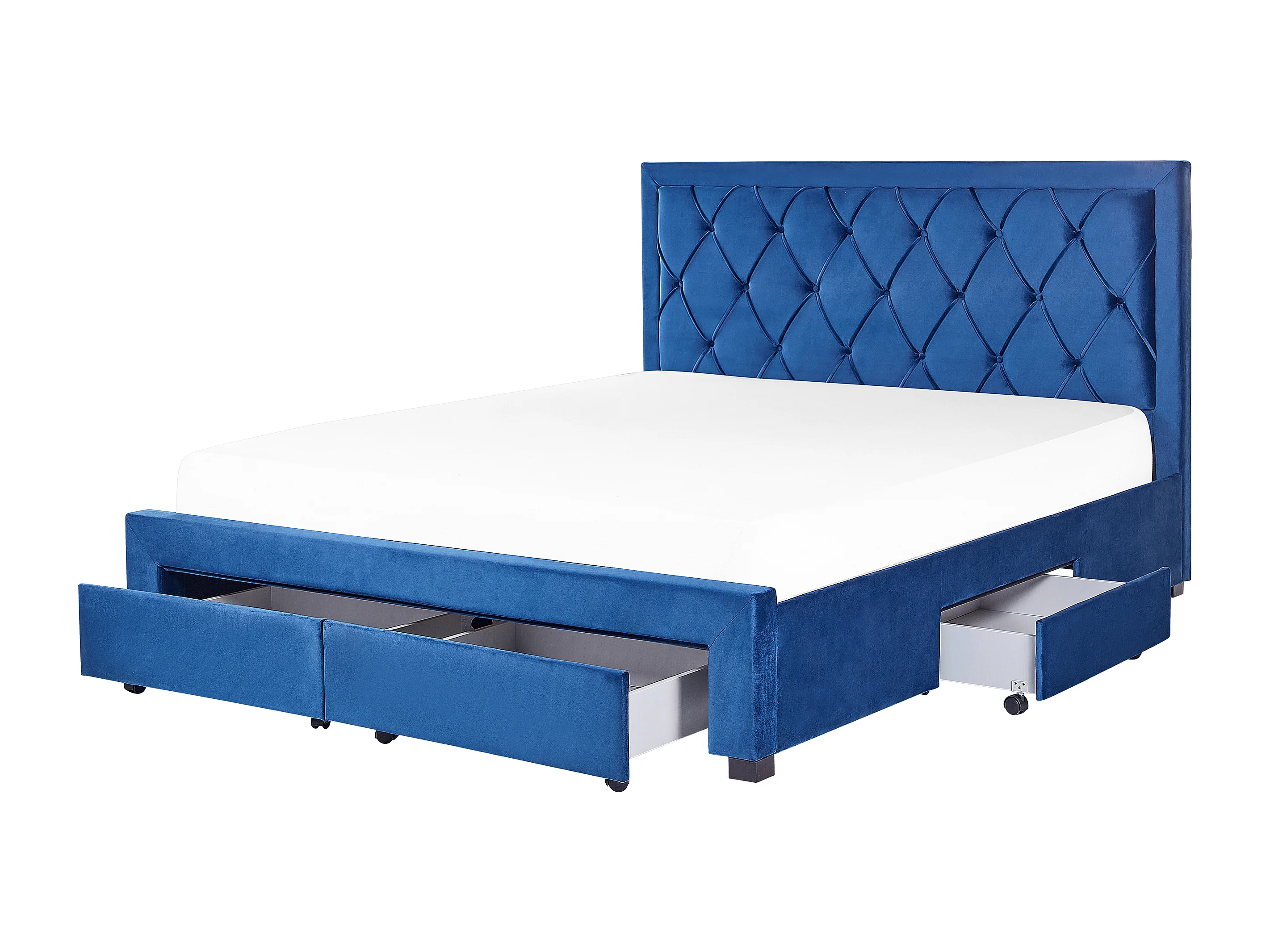 Cama com gavetas de arrumação Veludo LIEVIN 180 x 200 cm Azul marinho