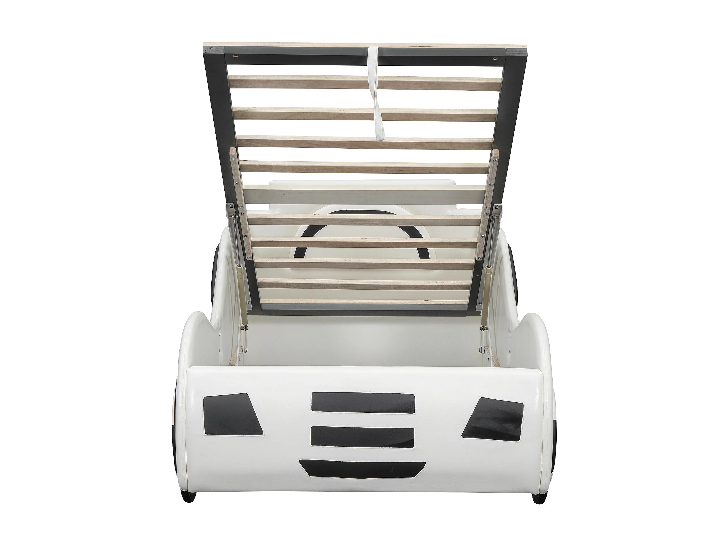 Cama com arrumação infantil 90x200 cm modelo carro, com espaço de arrumação, PU + MDF, sem colchão, branco