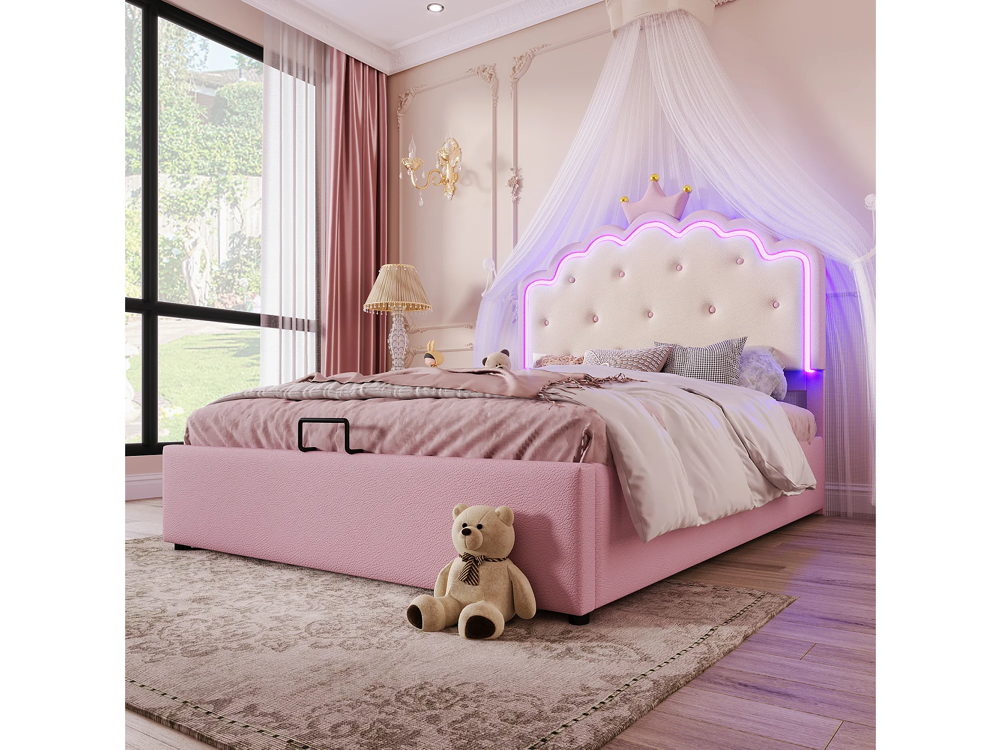 Cama com baú 140 x 200 cm - com LED e sistema hidráulico - rosa - sem colchão Colchão