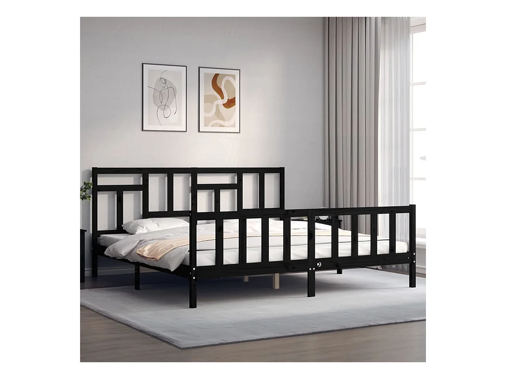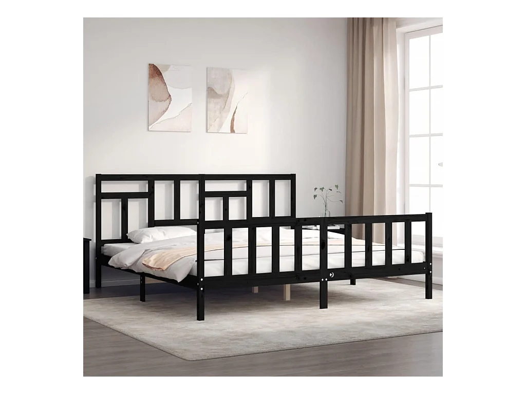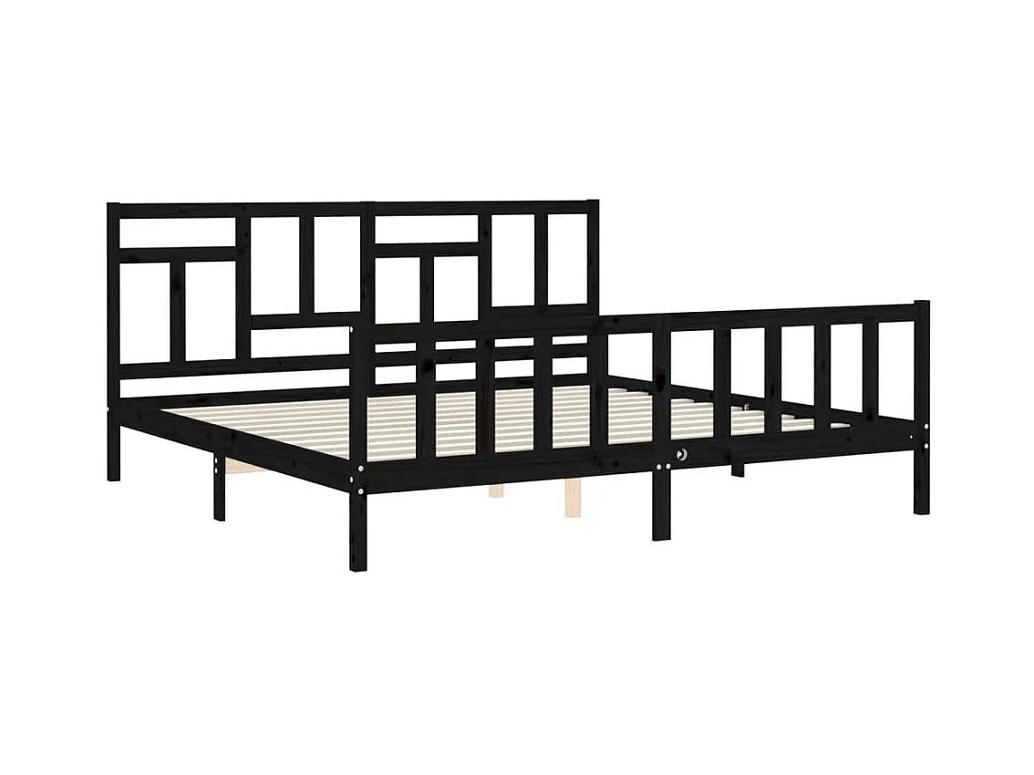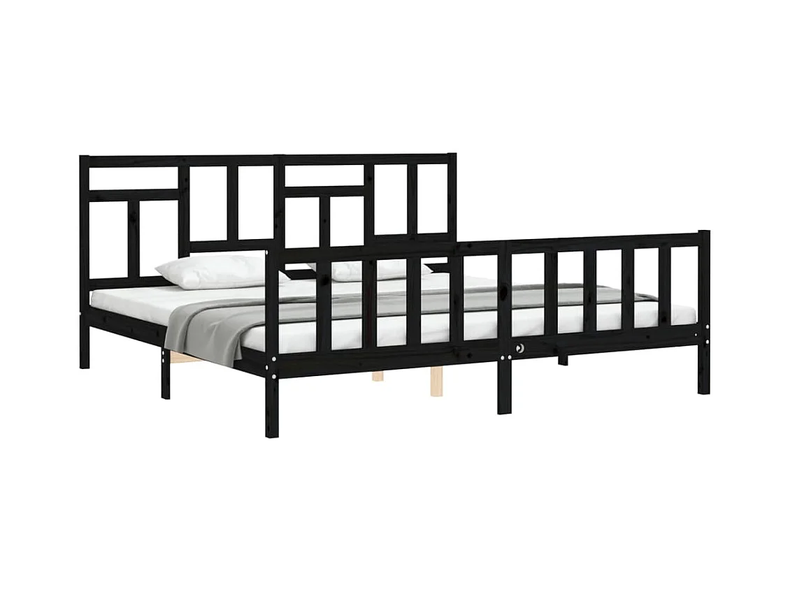 Cama com cabeceira 200x200 cm madeira maciça preto PT525548