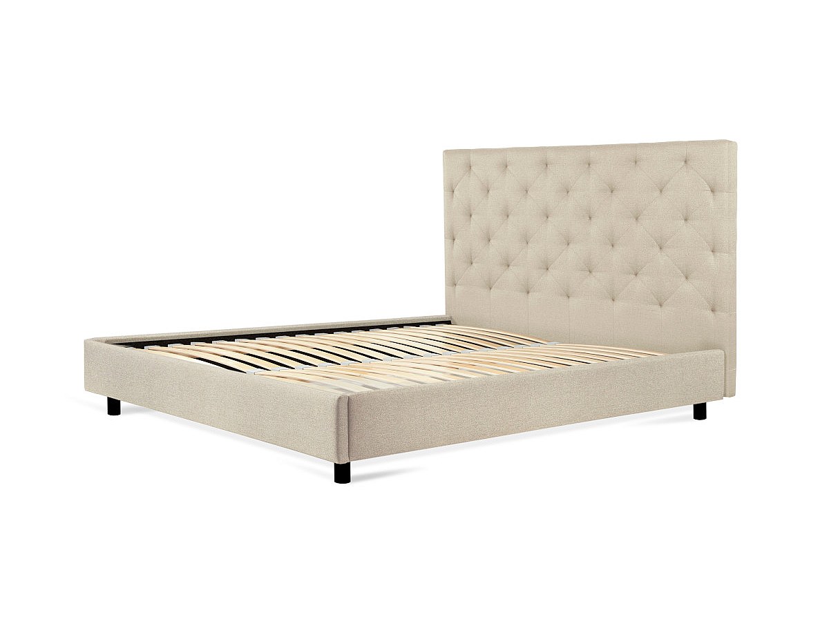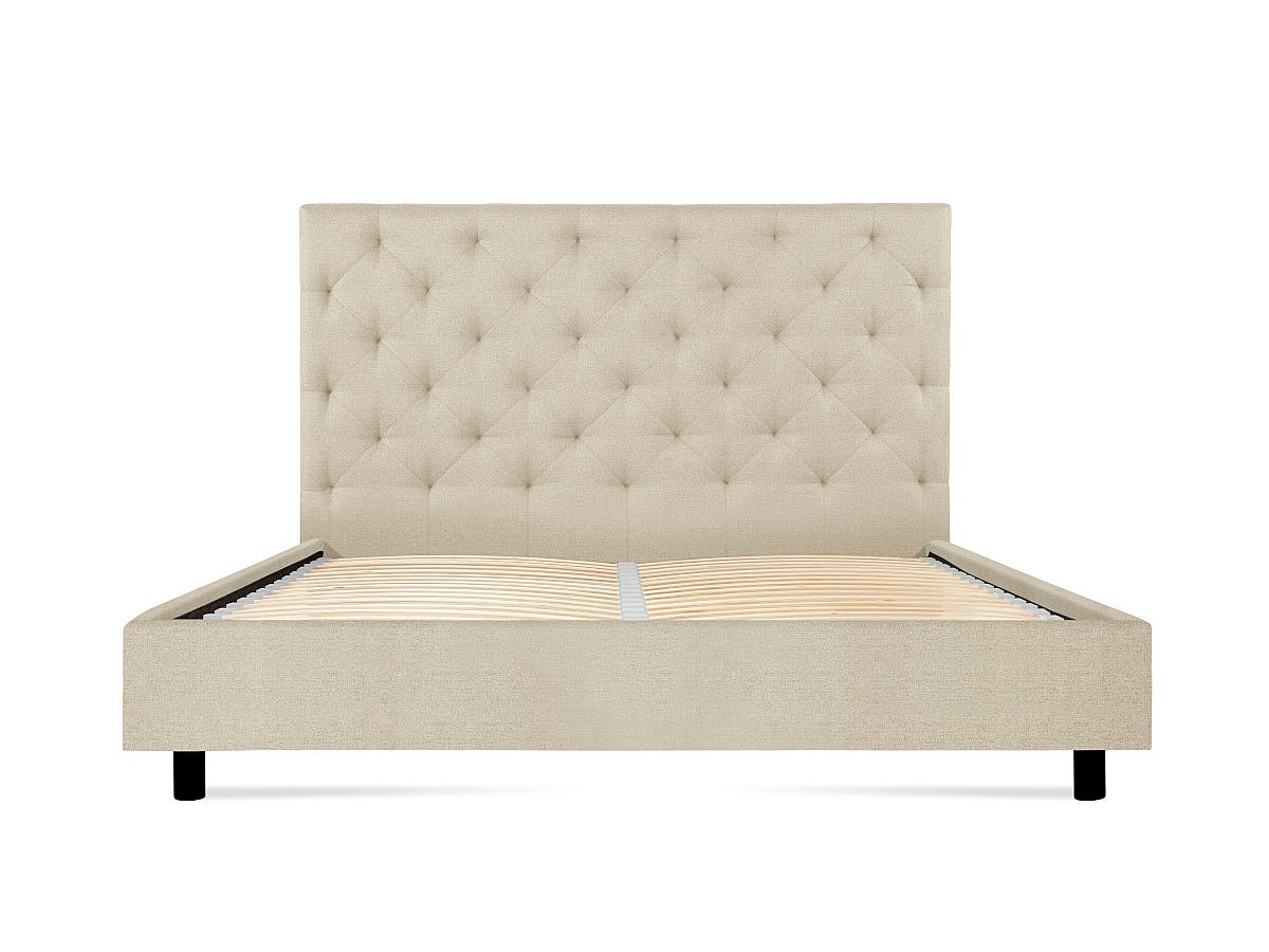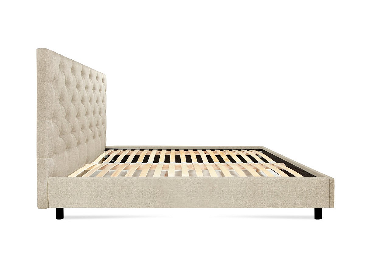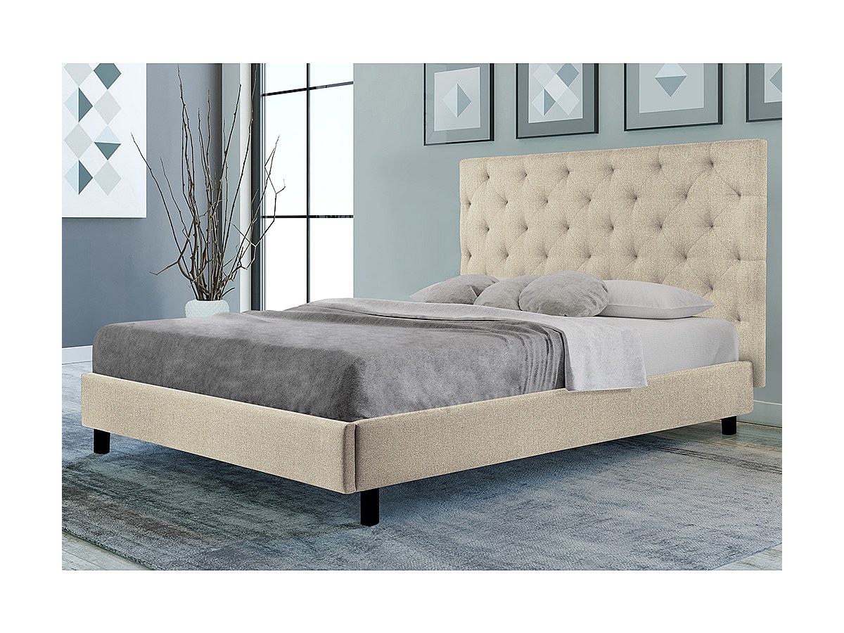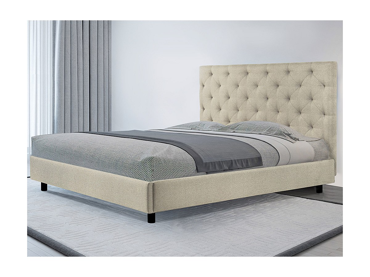 Cama com cabeceira acolchoada 140x190cm em tecido Bege - NADRA