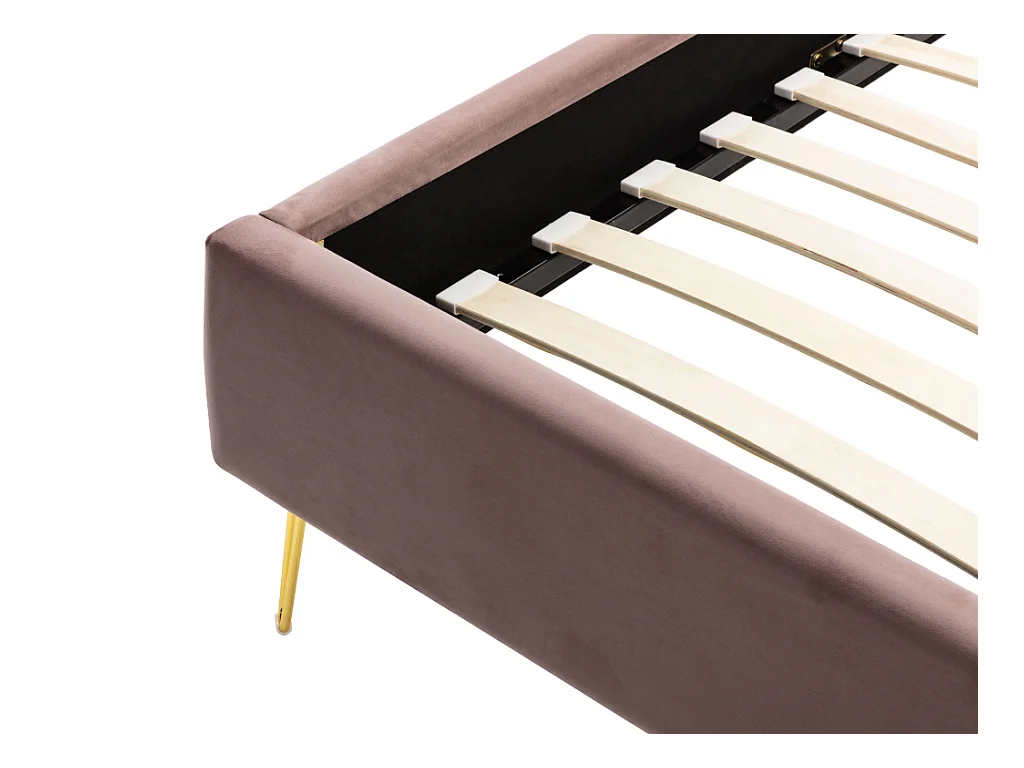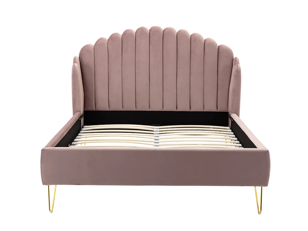 Cama com cabeceira de cama ondulada de 160 x 200 cm em veludo cor-de-rosa velho - SAGALI