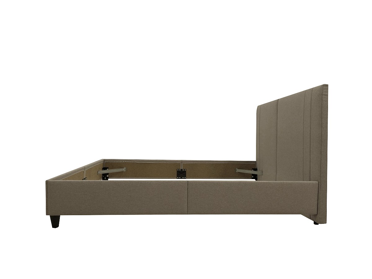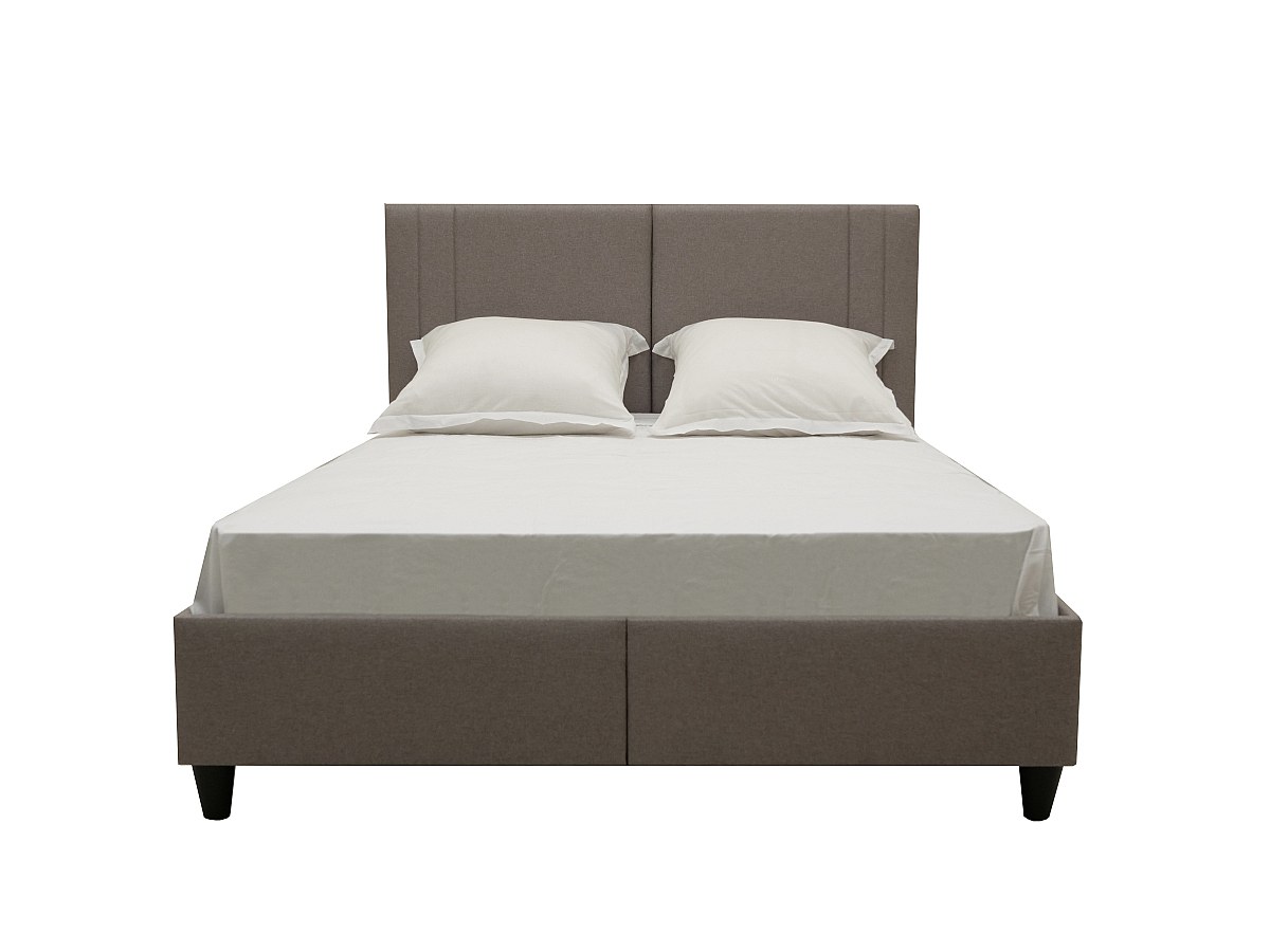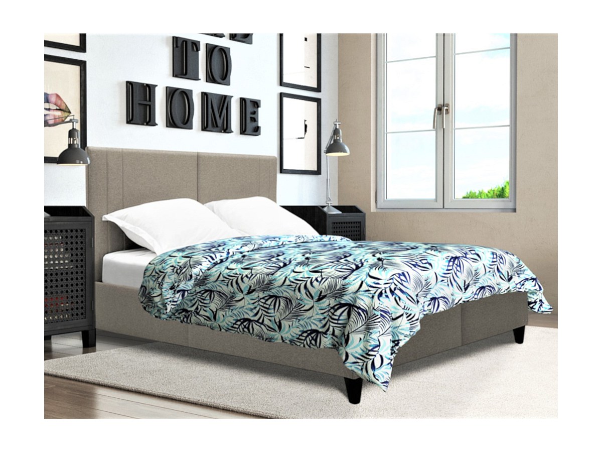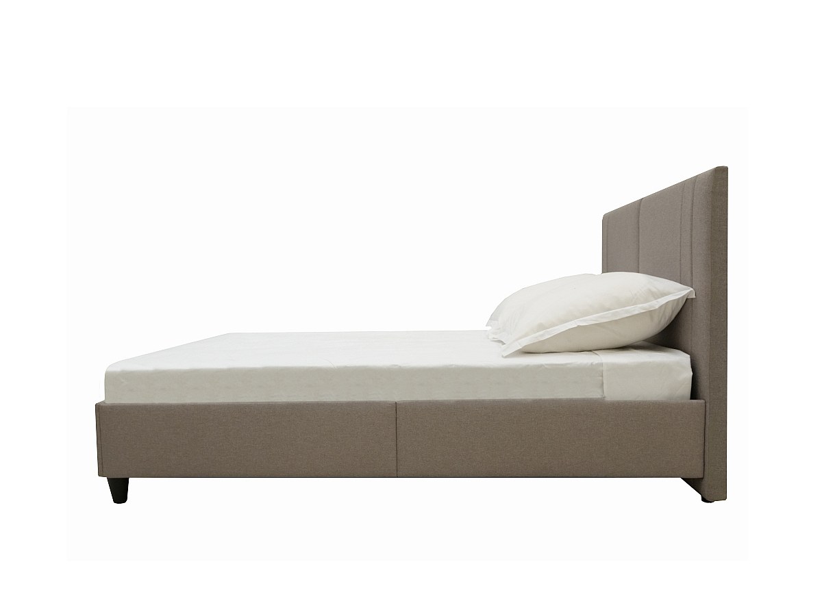 Cama com cabeceira de costuras verticais de 140 x 190 cm em Tecido Bege - AUGUSTE