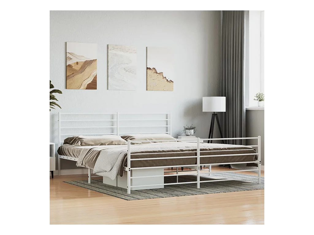 Cama com cabeceira e pés 200x200 cm metal branco PT599756