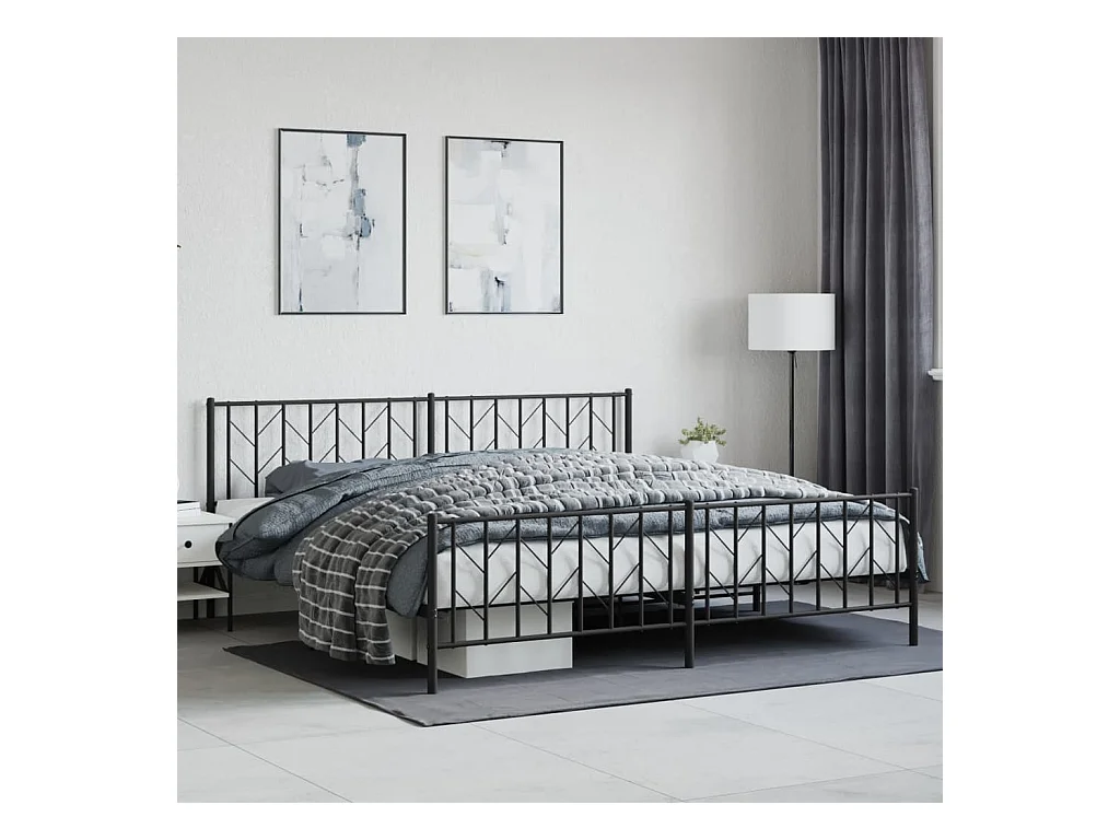 Cama com cabeceira e pés 200x200 cm metal preto PT980022