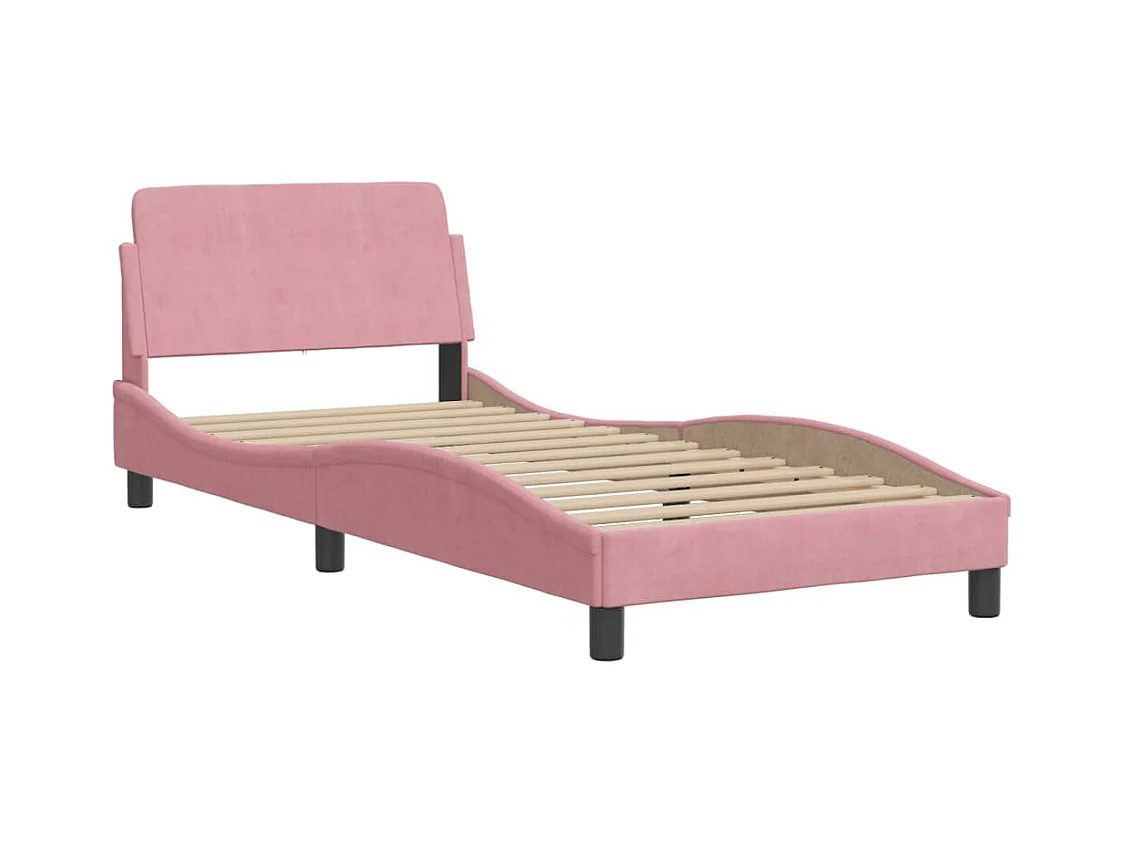 Cama c/ cabeceira 90x200 cm veludo rosa PT951182