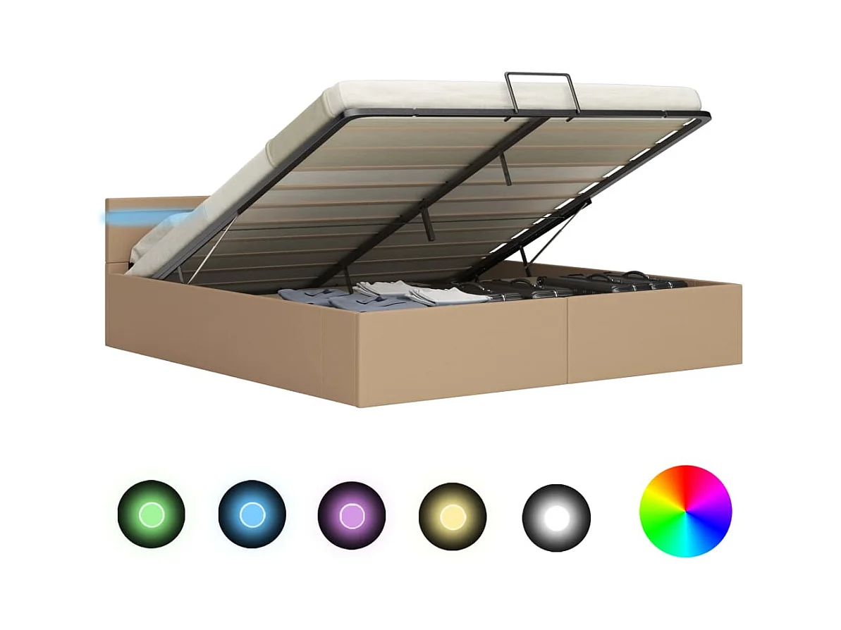 Cama com compartimento de arrumação e LED 180x200cm couro artif. cappuccino PT760761
