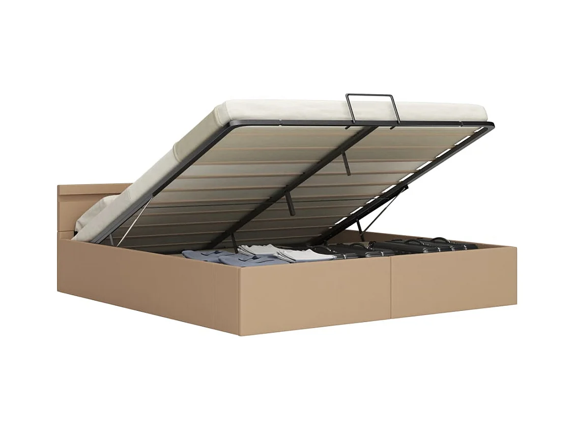 Cama com compartimento de arrumação e LED 160x200cm couro artif. cappuccino PT955161