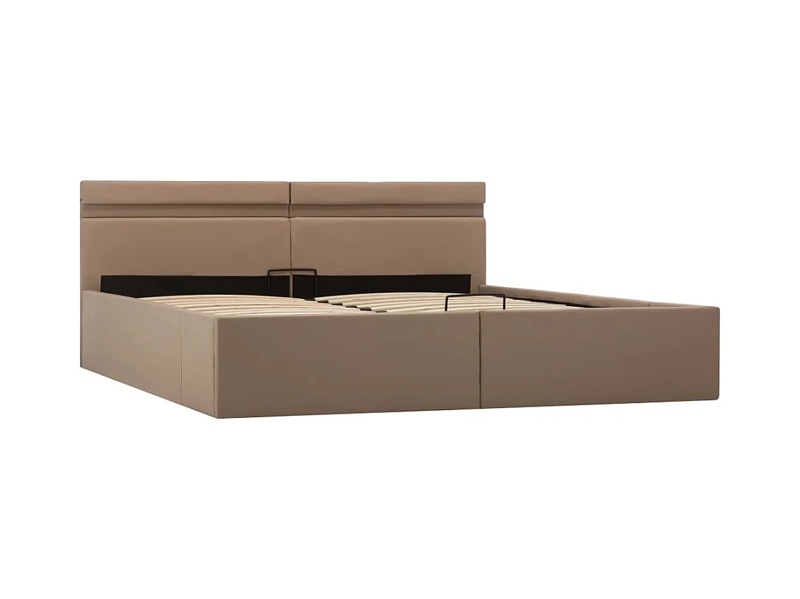 Cama hidrául. arrumação e LED 120x200cm couro artif. cappuccino