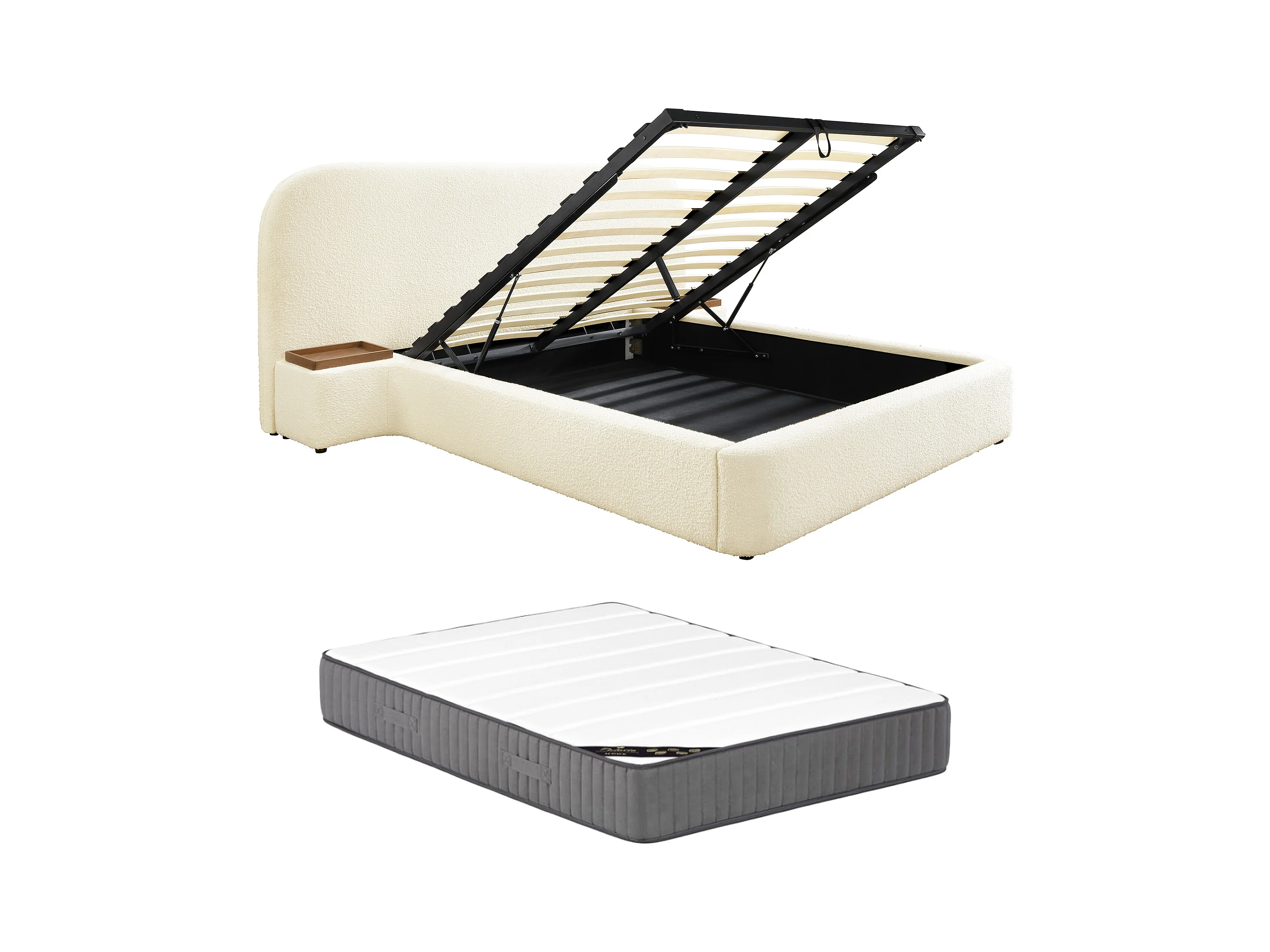 Cama com espaço de arrumação 180x200 cm com mesas de cabeceira tecido bouclé branco + colchão - ESTERIA de Maison Céphy