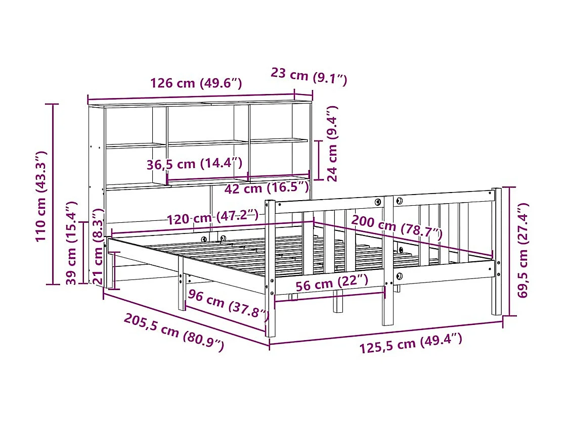 Cama com estante sem colchão 120x200 cm pinho maciço
