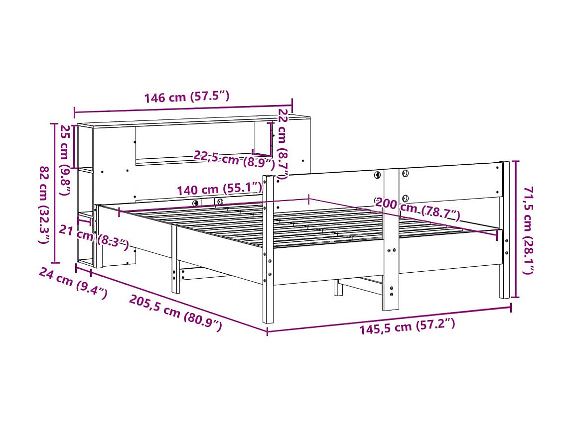 Cama com estante sem colchão 140x200 cm pinho maciço