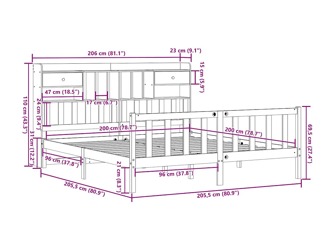 Cama com estante sem colchão 200x200 cm pinho maciço
