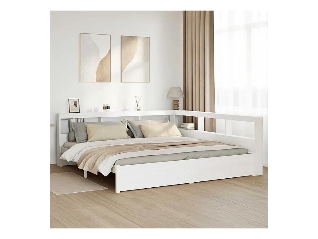 Cama sem colchão com cabeceira 200x200 cm pinho maciço branco