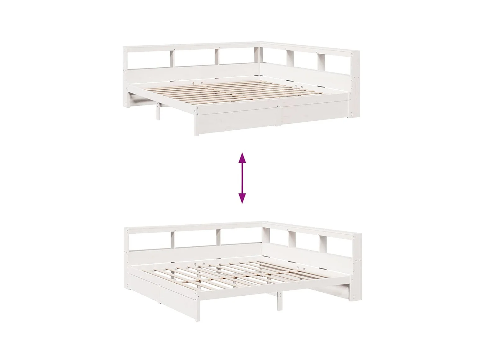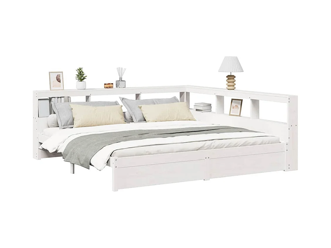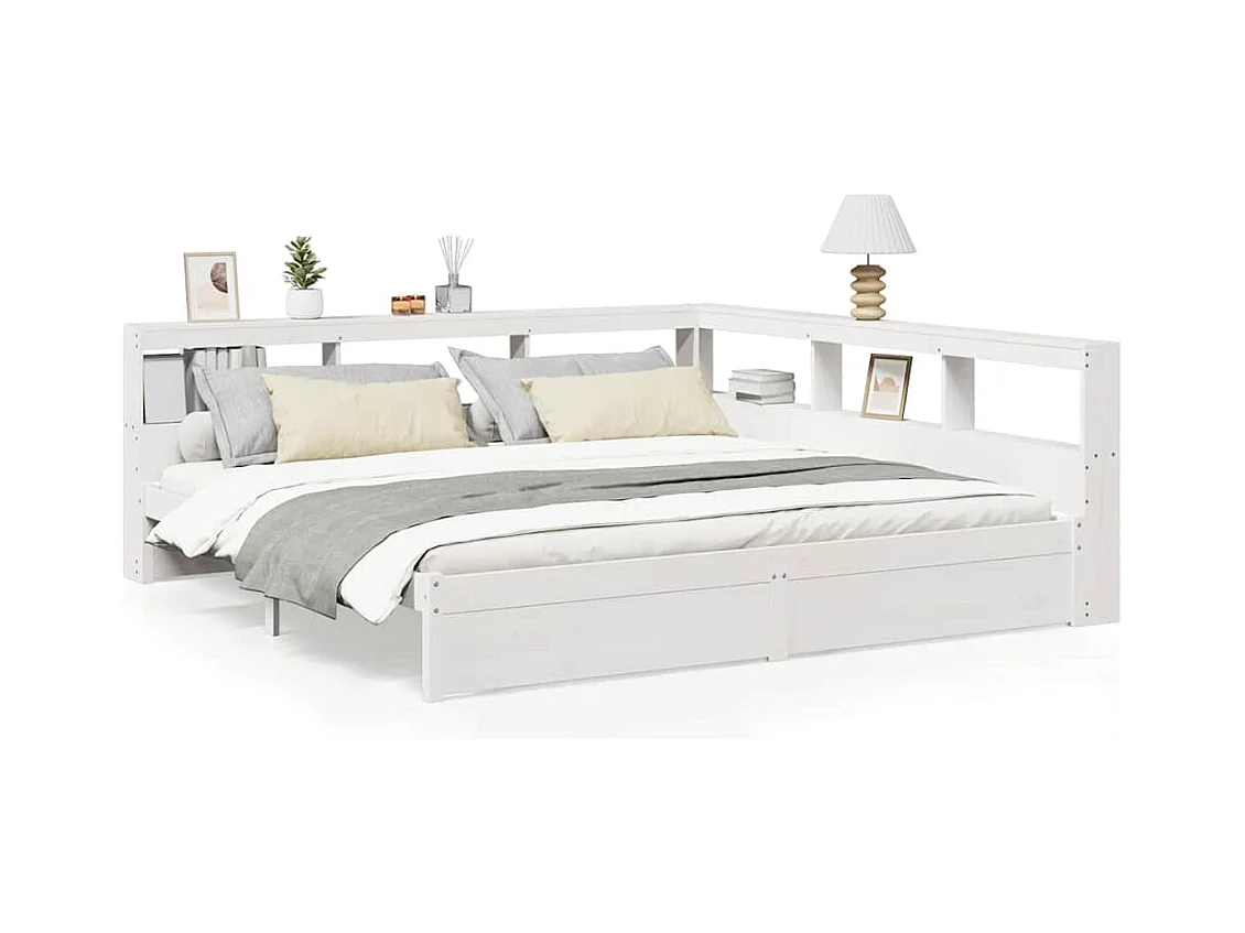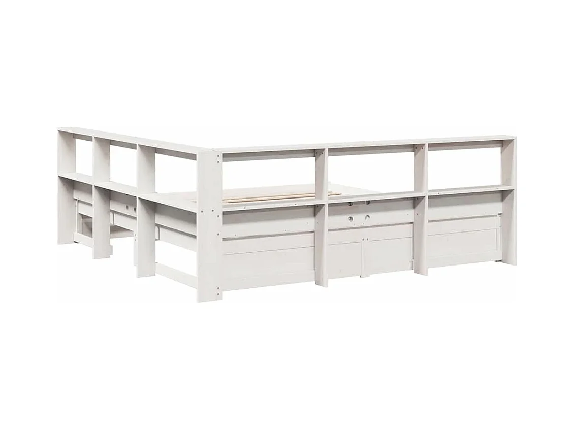 Cama com estante sem colchão 200x200 cm pinho maciço branco