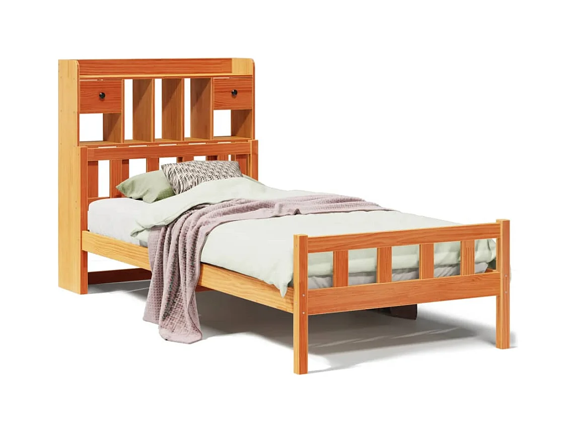 Cama com estante sem colchão 75x190cm pinho maciço castanho-mel