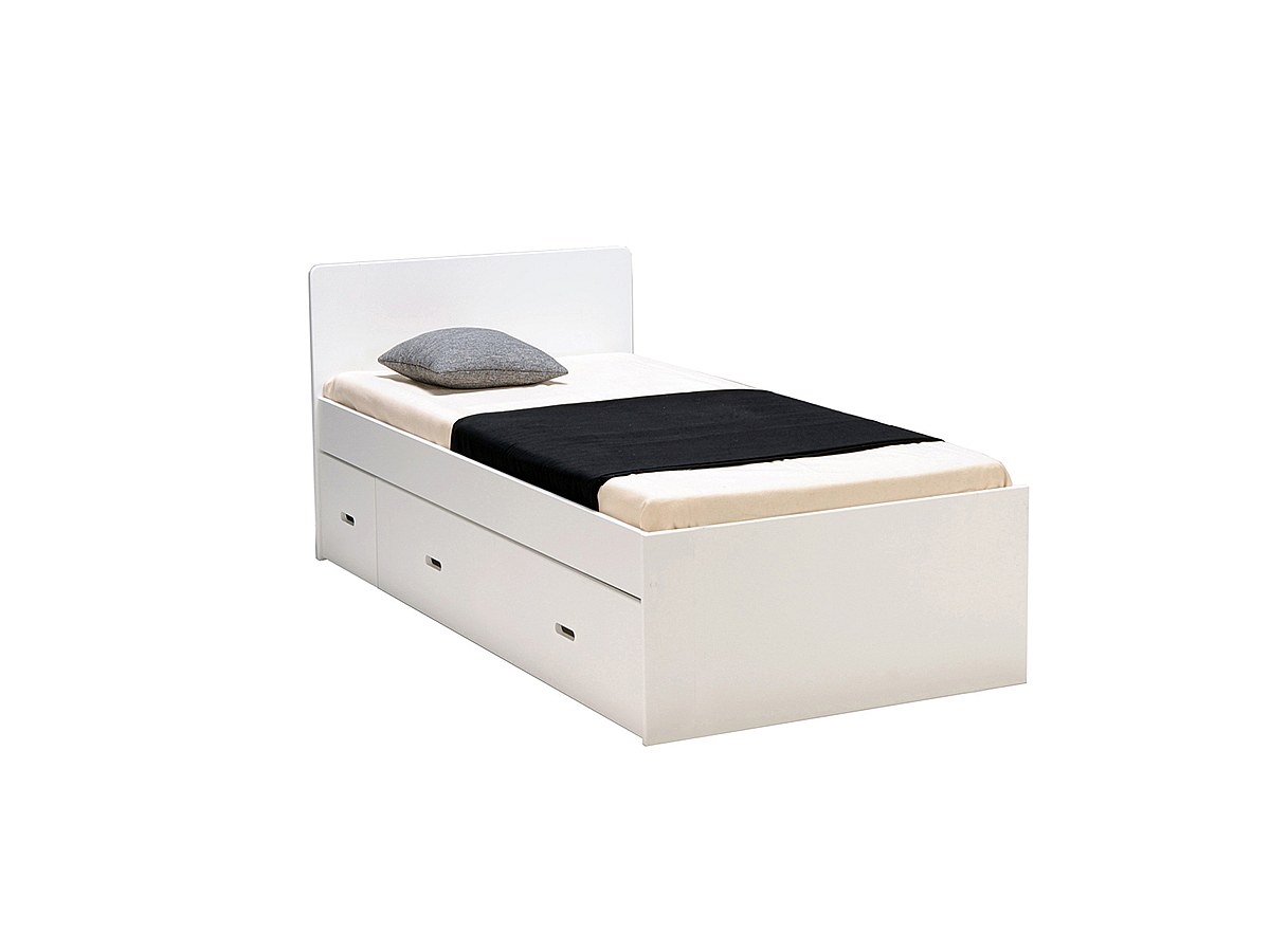 Cama com mesa de cabeceira e gaveta 90x190 cm lacado a branco - PACOME