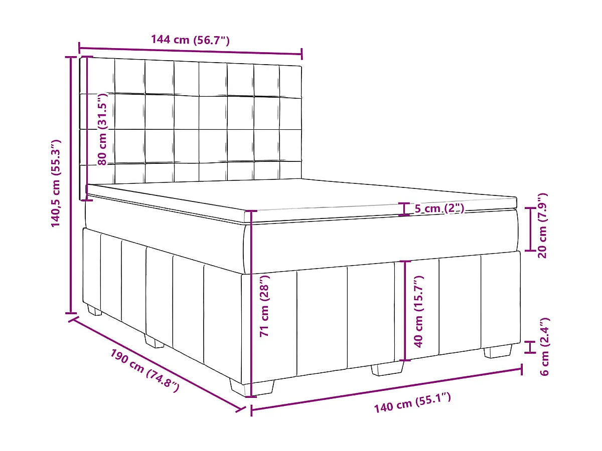 Cama com molas/colchão 140x190 cm tecido cinzento-escuro