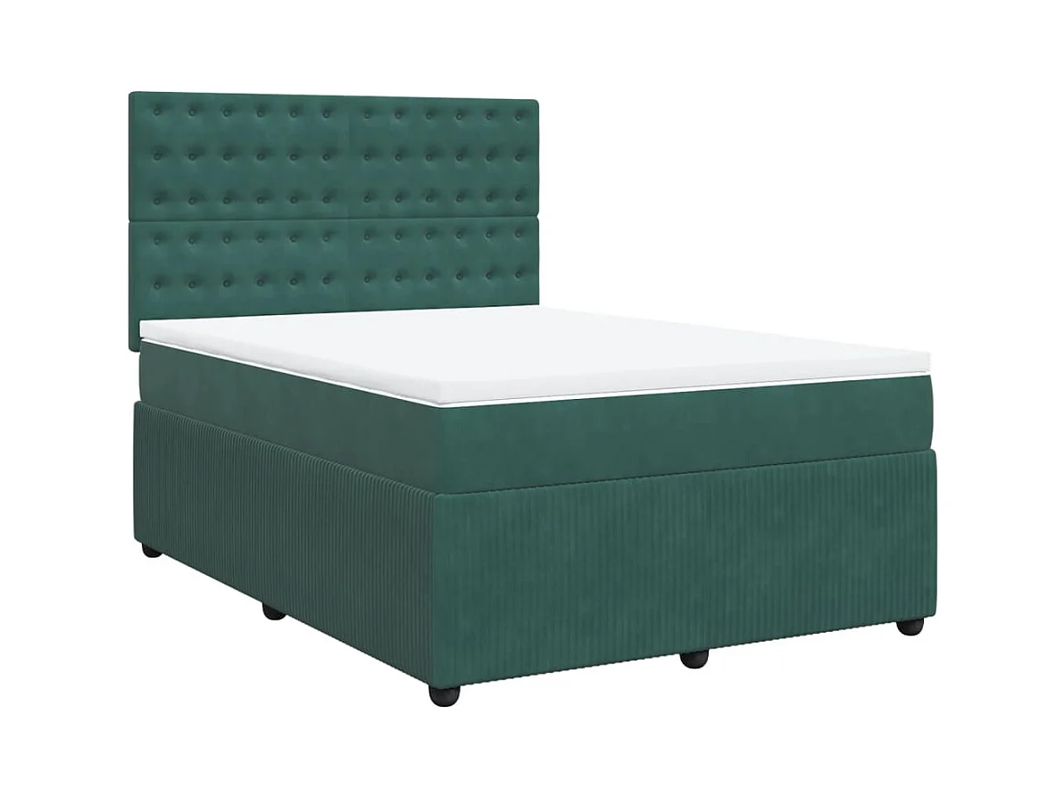 Cama com molas/colchão 140x200 cm veludo verde-escuro