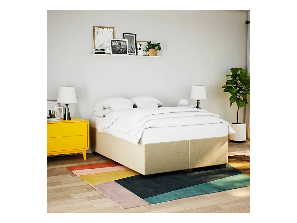 Cama com molas/colchão 160x200 cm tecido cor creme