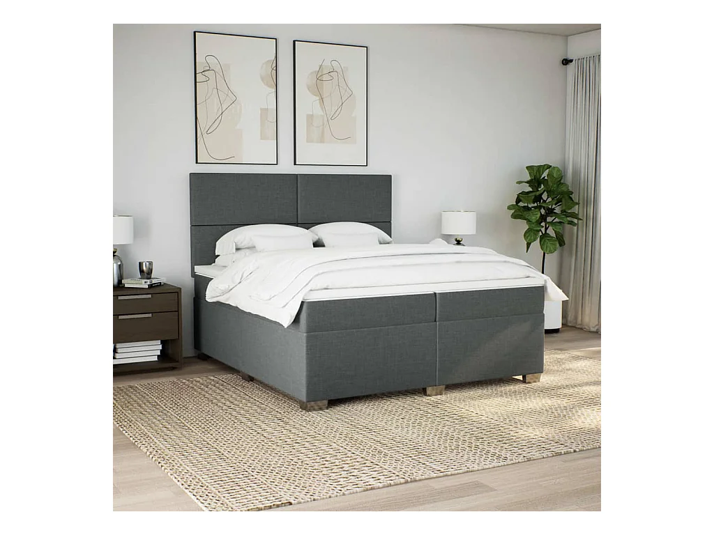Cama com molas/colchão 200x200 cm tecido cinzento-escuro
