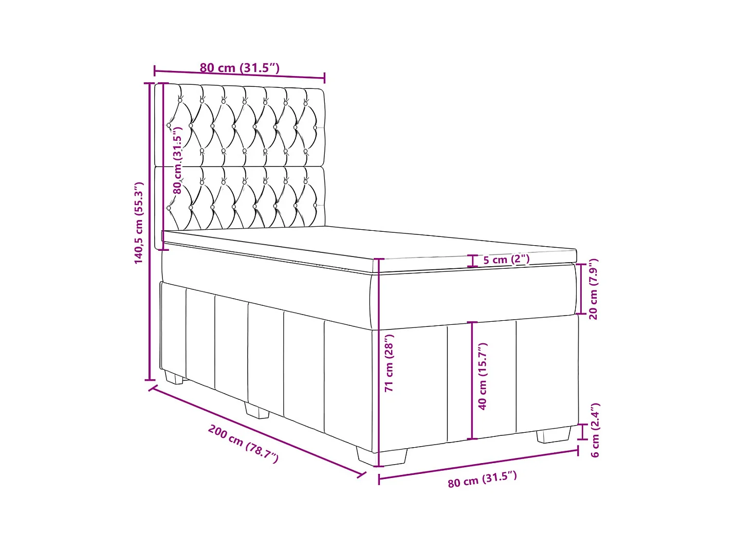 Estrutura de cama sem colchão 80x200 cm tecido castanho-escuro