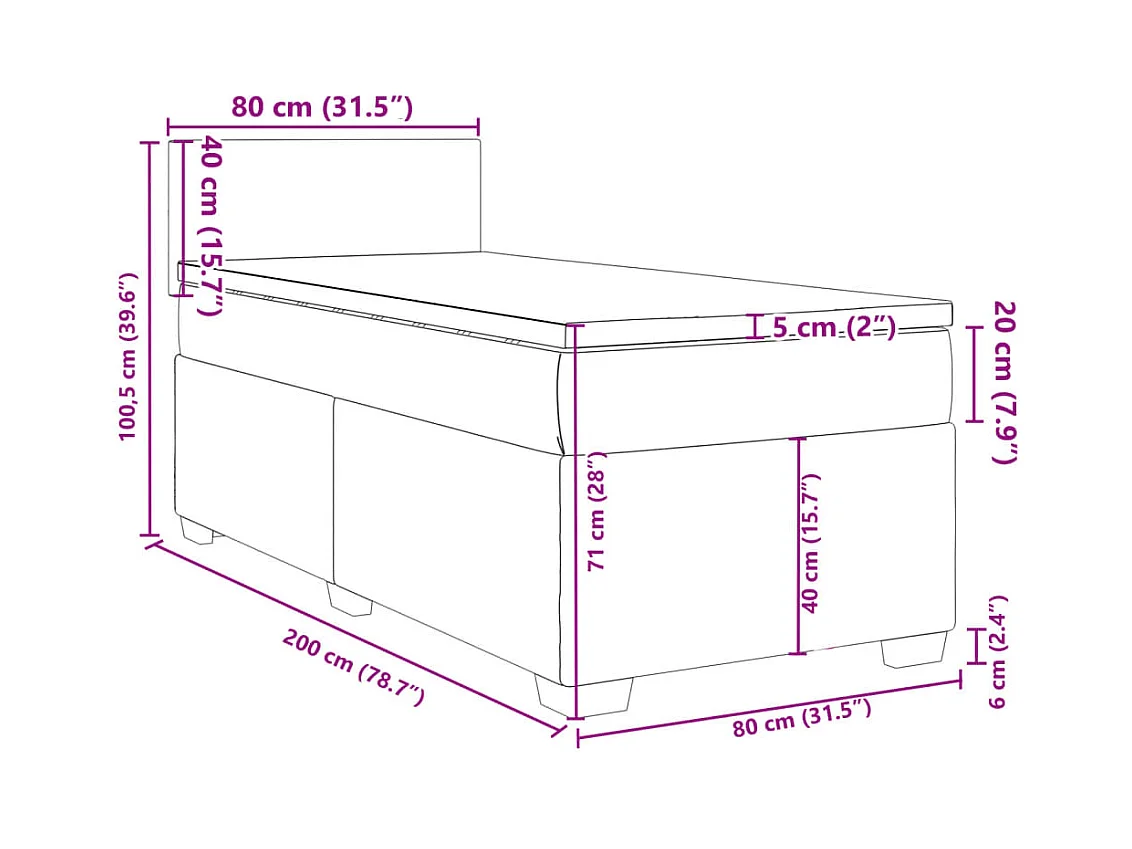 Cama Box com colchão Cinzento escuro 80 x 200 cm Veludo