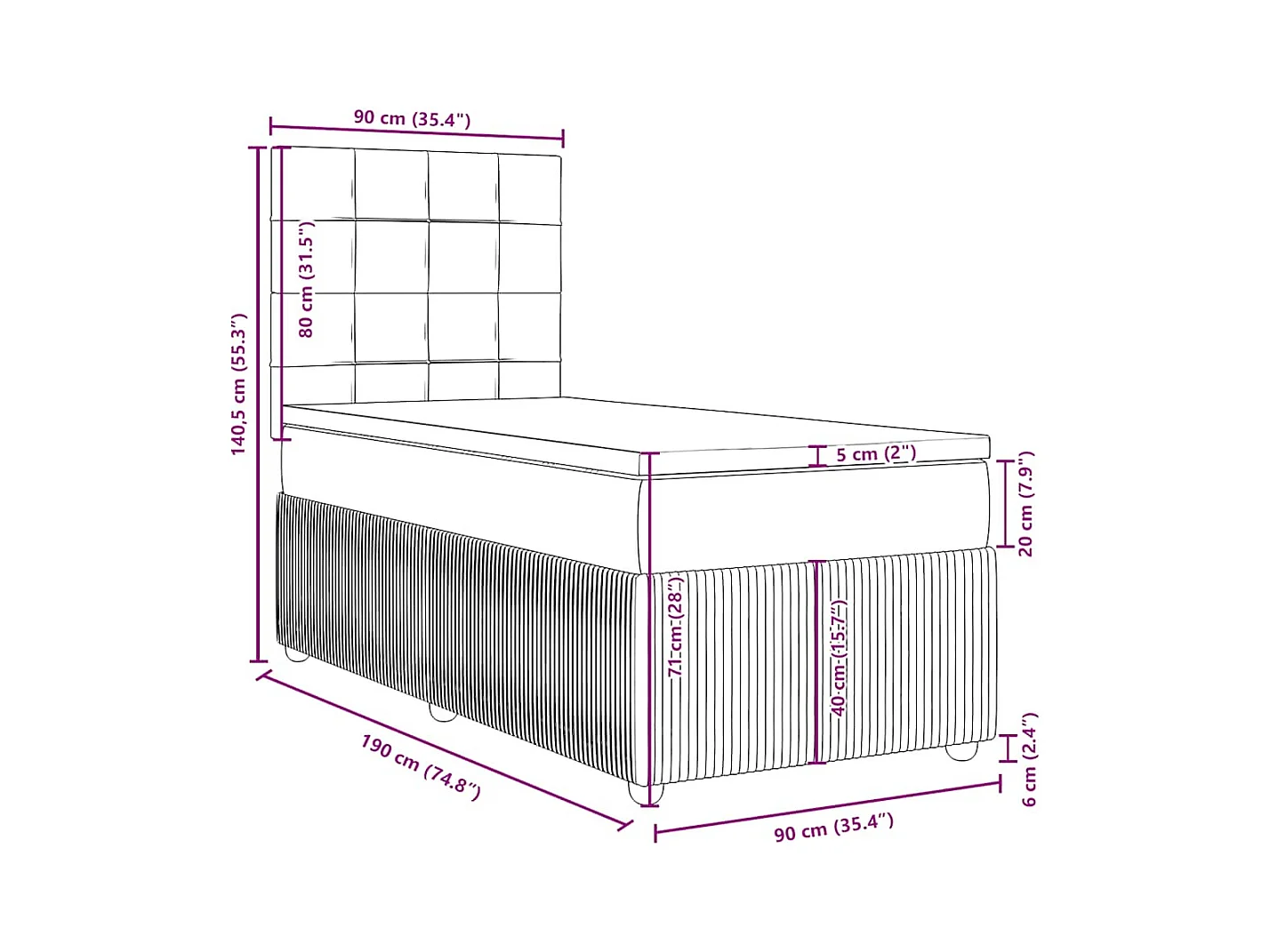 Cama box spring com colchão Cinzento-acastanhado 90 x 190 cm
