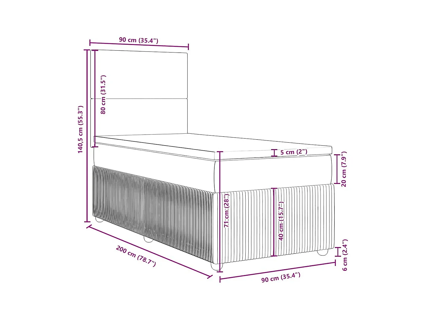 Cama com molas/colchão 90x200 cm tecido castanho-acinzentado