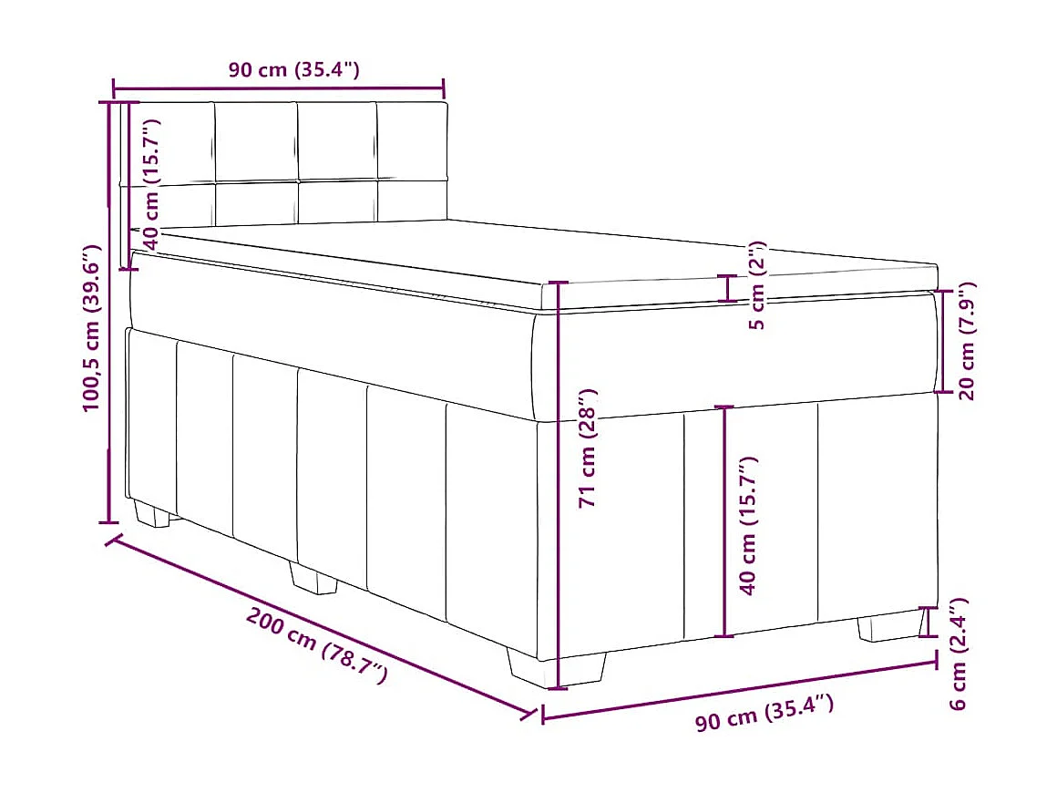 Cama com molas/colchão 90x200 cm tecido castanho-escuro