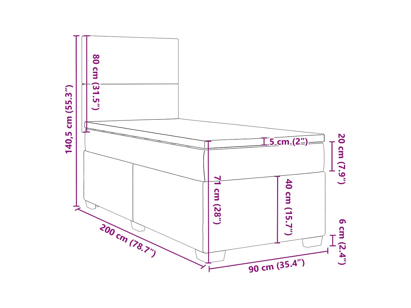 Cama com molas/colchão 90x200 cm tecido cinzento-escuro
