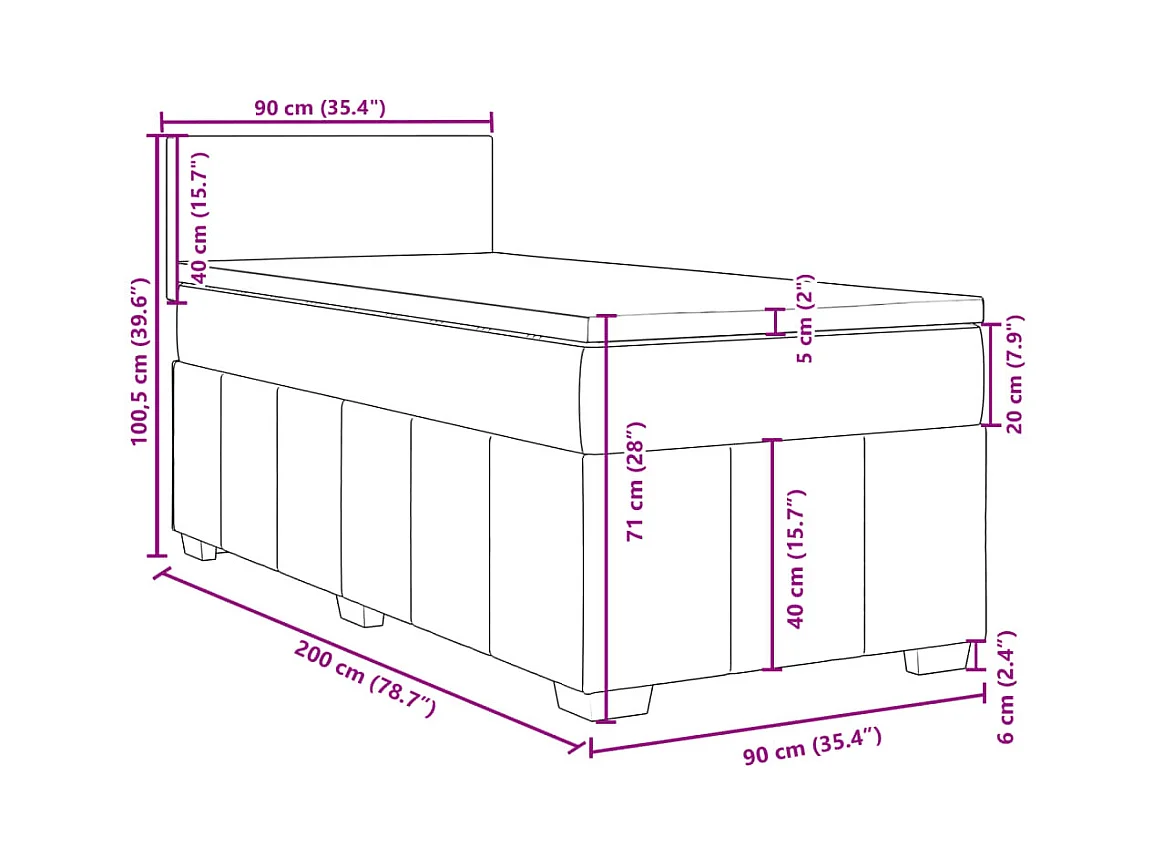 Cama com molas/colchão 90x200 cm tecido cor crème